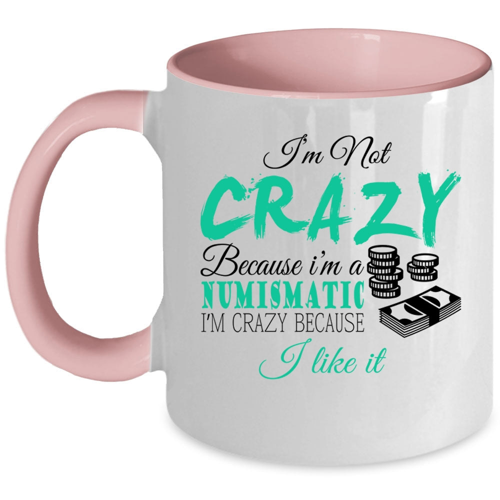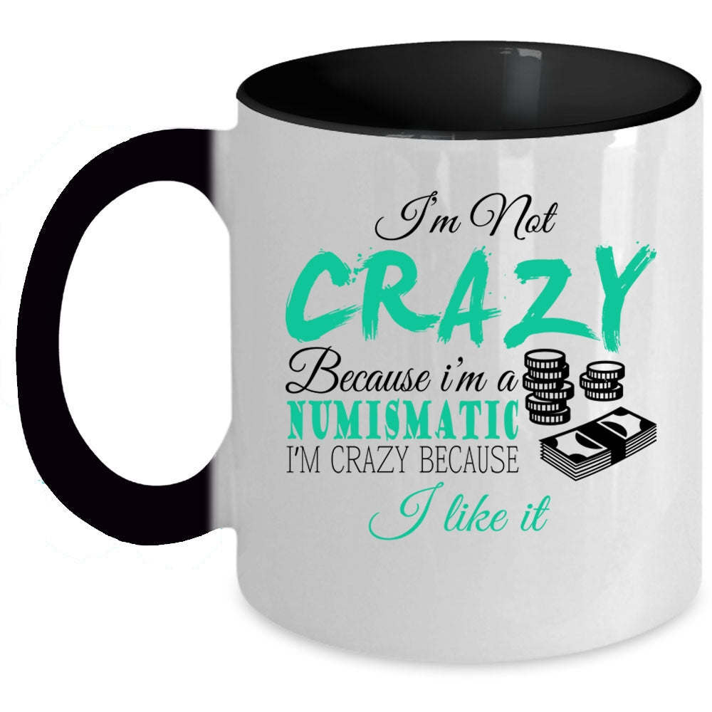 I'm Crazy Because I Like It Coffee Mug, I'm Not Crazy Because I'm A Numismatic Accent Mug