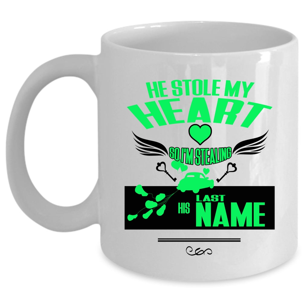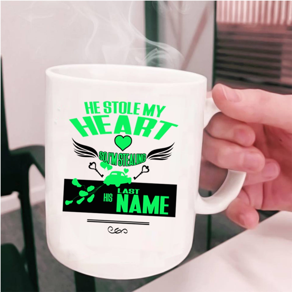 I'm Stealing His Last Name Coffee Mug, He Stole My Heart Cup