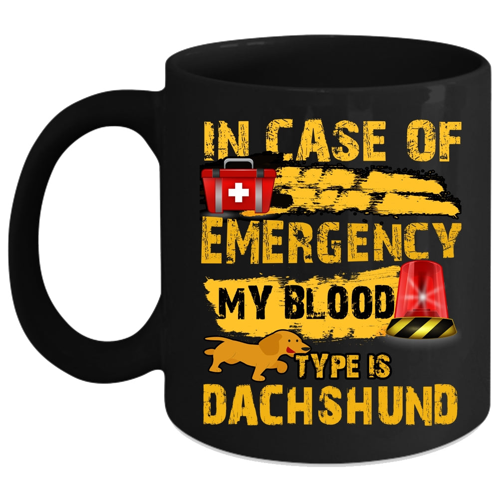 In Case Of Emergency Coffee Mug, My Blood Type Is Dachshund Coffee Cup
