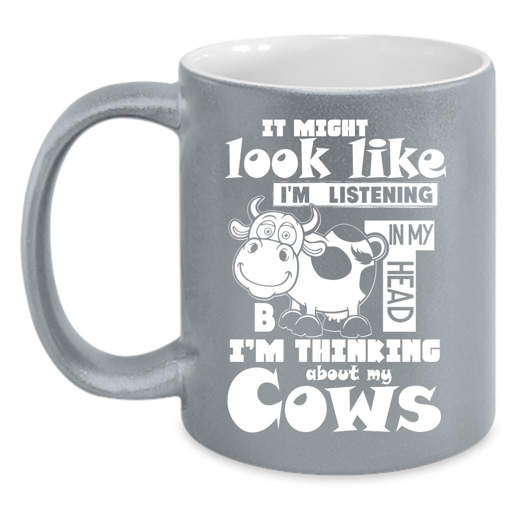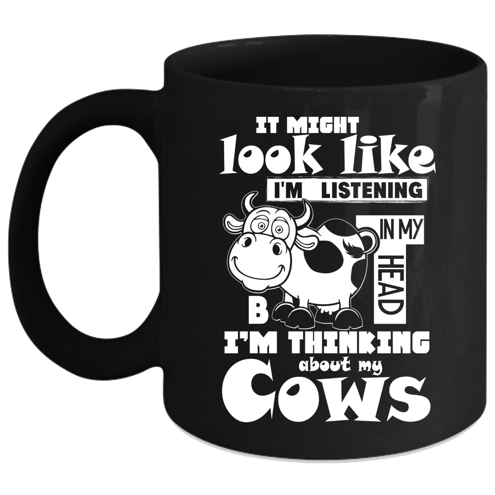 In My Head I'm Thinking About My Cows Coffee Mug, I Love Cows Coffee Cup