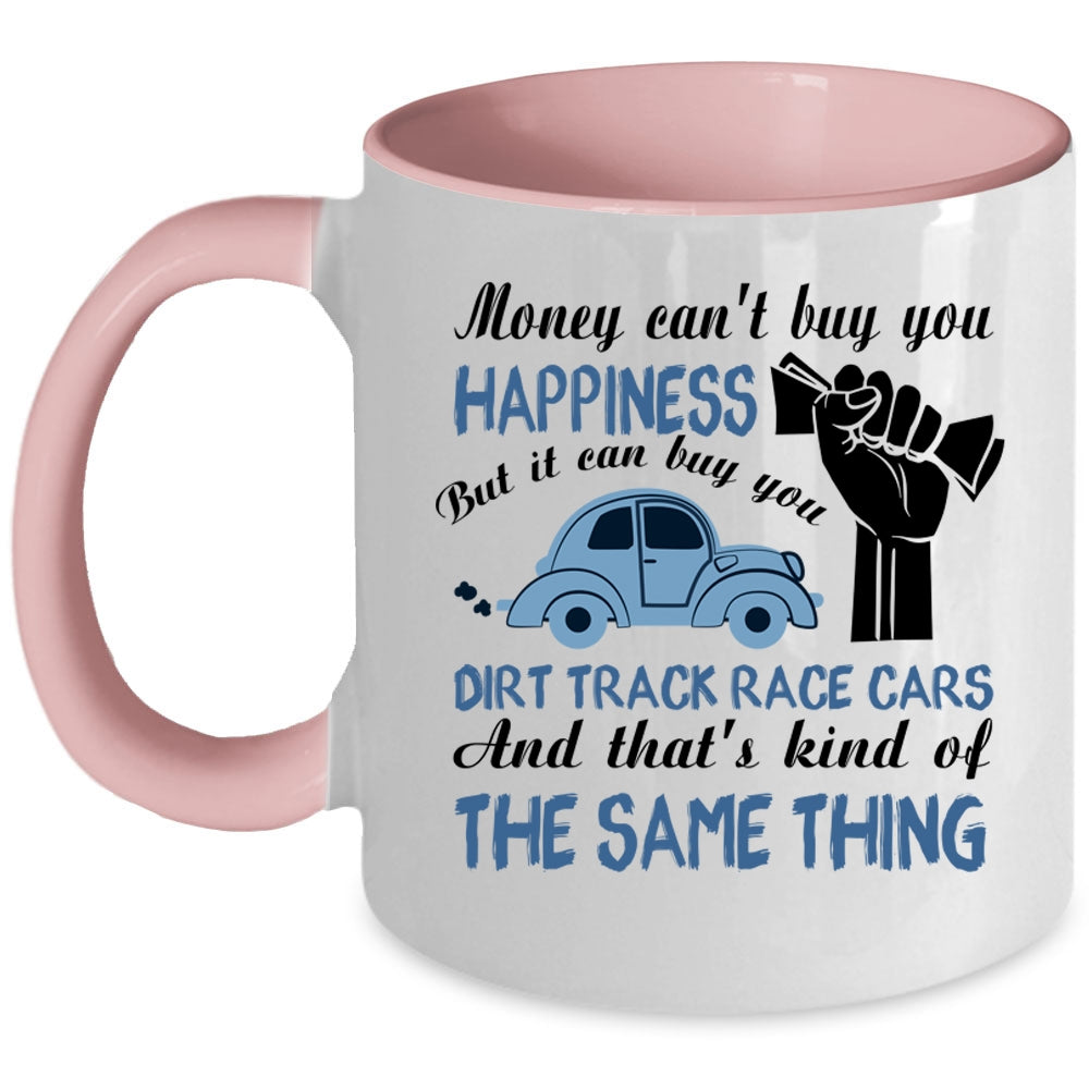 It Can Buy You Dirt Track Race Cars Coffee Mug, Money Can't Buy You Happiness Accent Mug