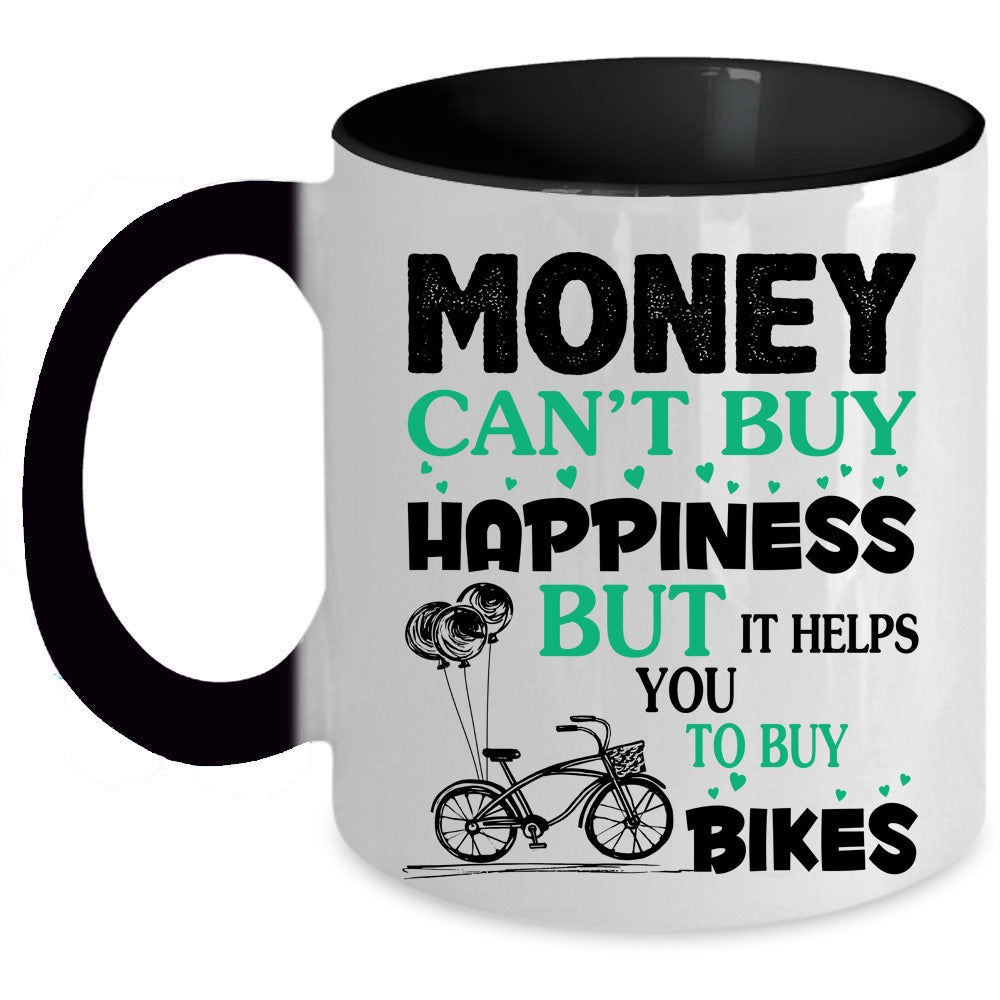 It Helps You To Buy Bikes Coffee Mug, Money Can't Buy Happiness Accent Mug