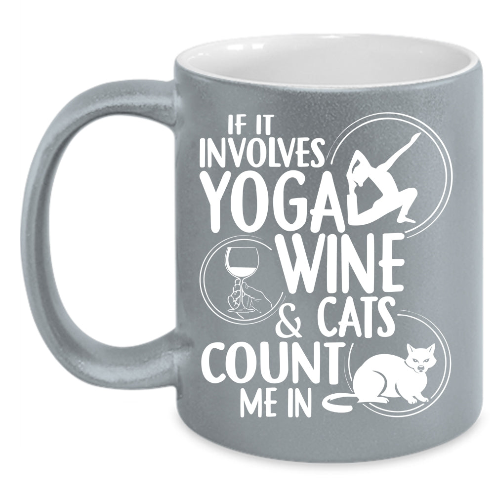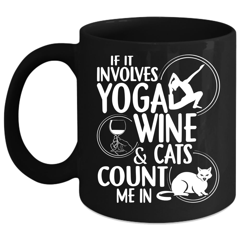 It Involves Yoga Wine And Cats Coffee Mug, Cool Wine Drinker Coffee Cup