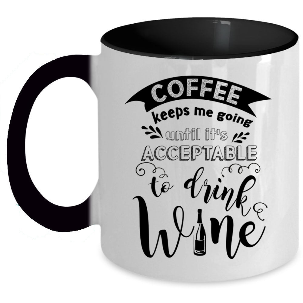 It's Acceptable To Drink Wine Coffee Mug, Coffee Keeps Me Going Accent Mug