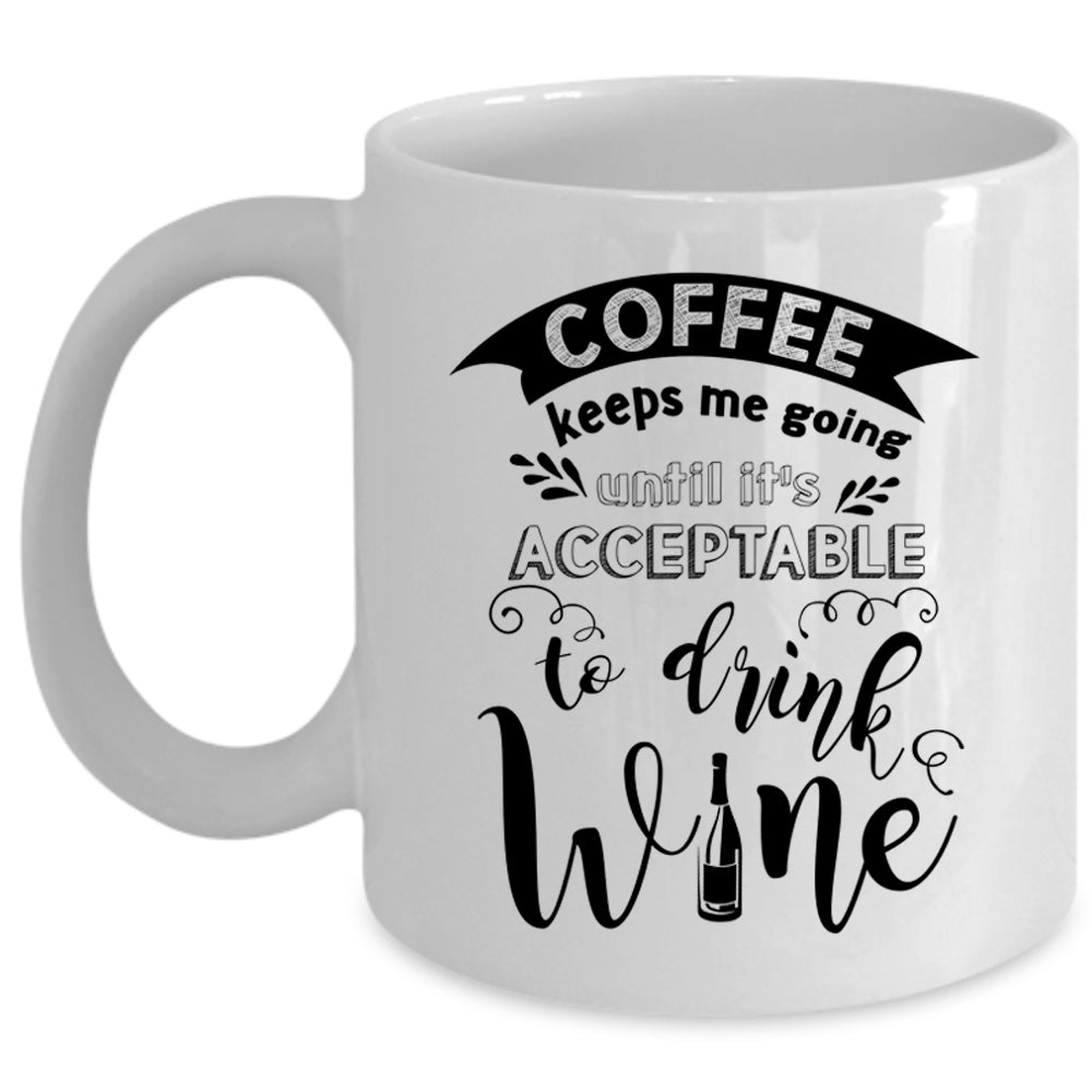 It's Acceptable To Drink Wine Coffee Mug, Coffee Keeps Me Going Cup