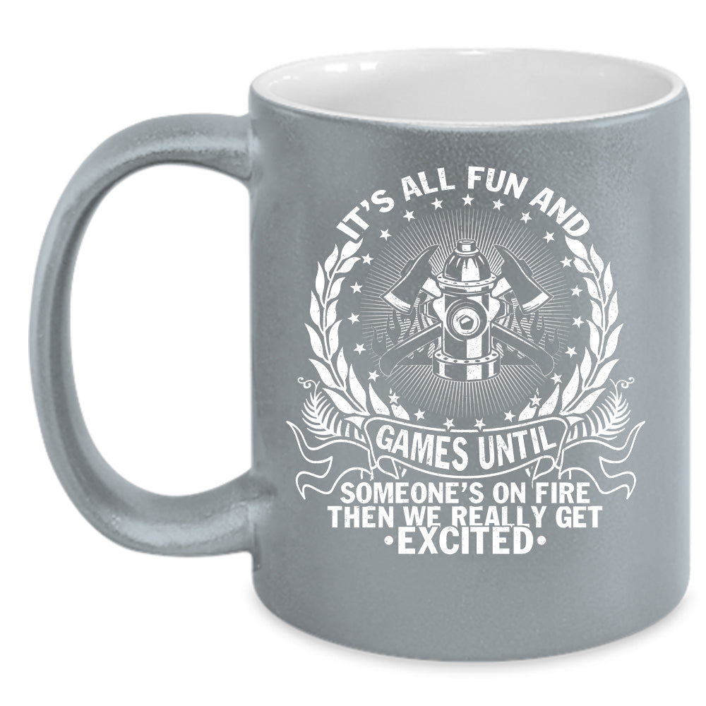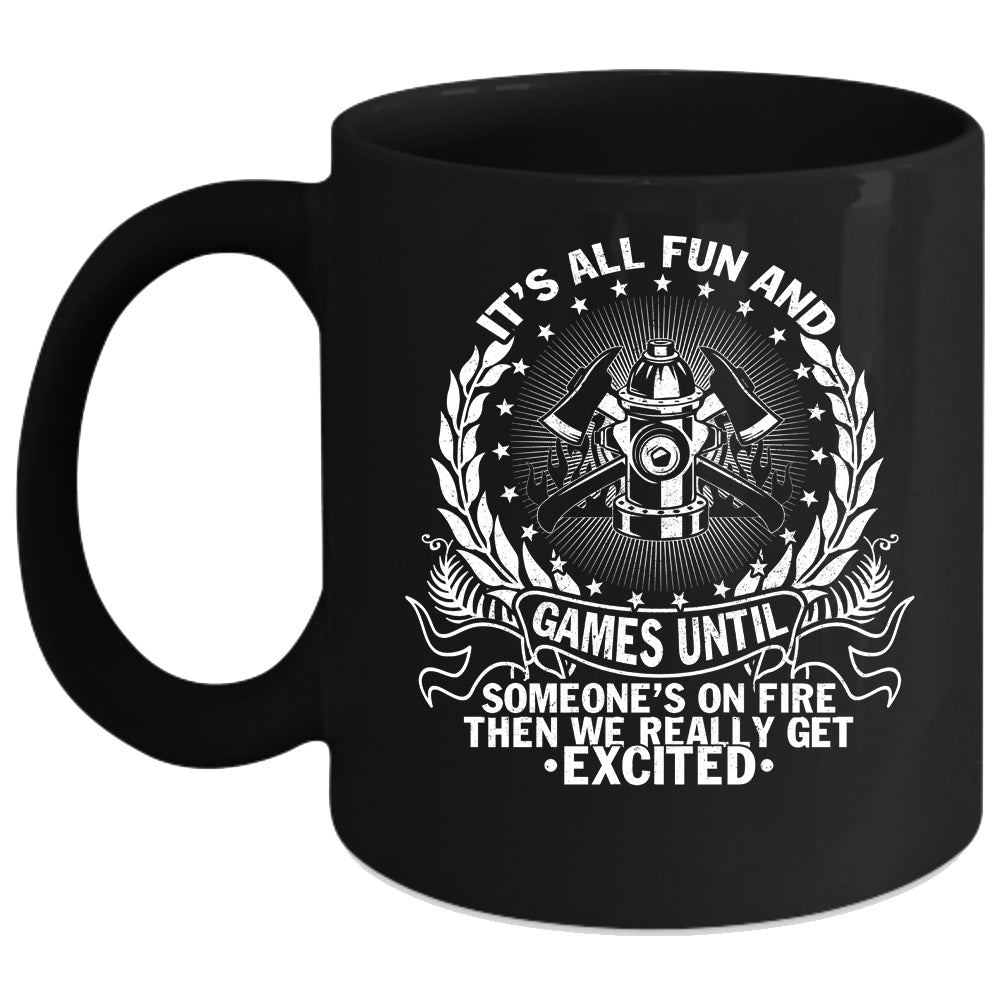 It's All Fun And Games Coffee Mug, Funny Firefighter Coffee Cup
