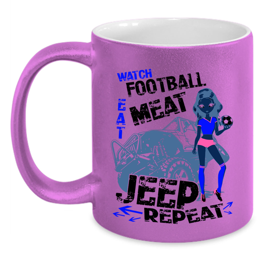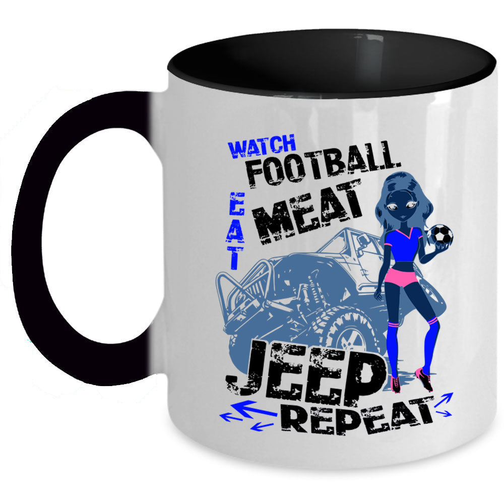 Jeep Coffee Mug, Watch Football Eat Meat Accent Mug