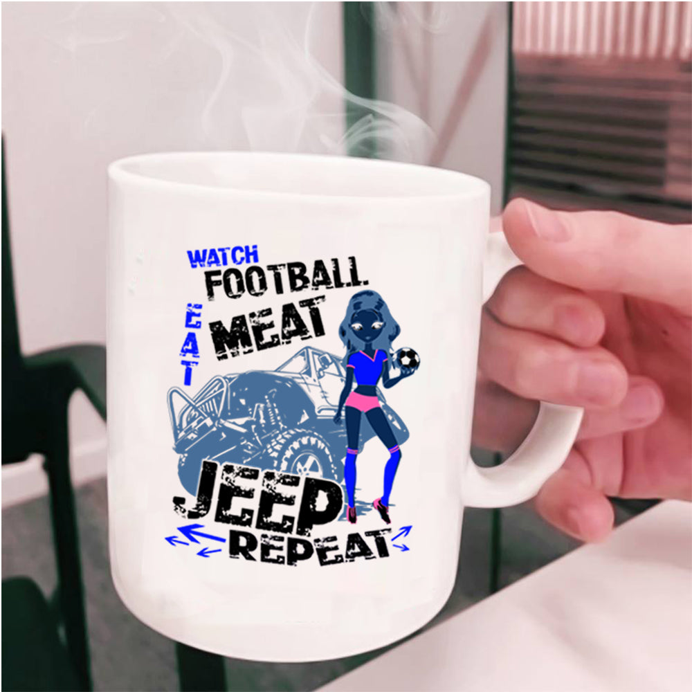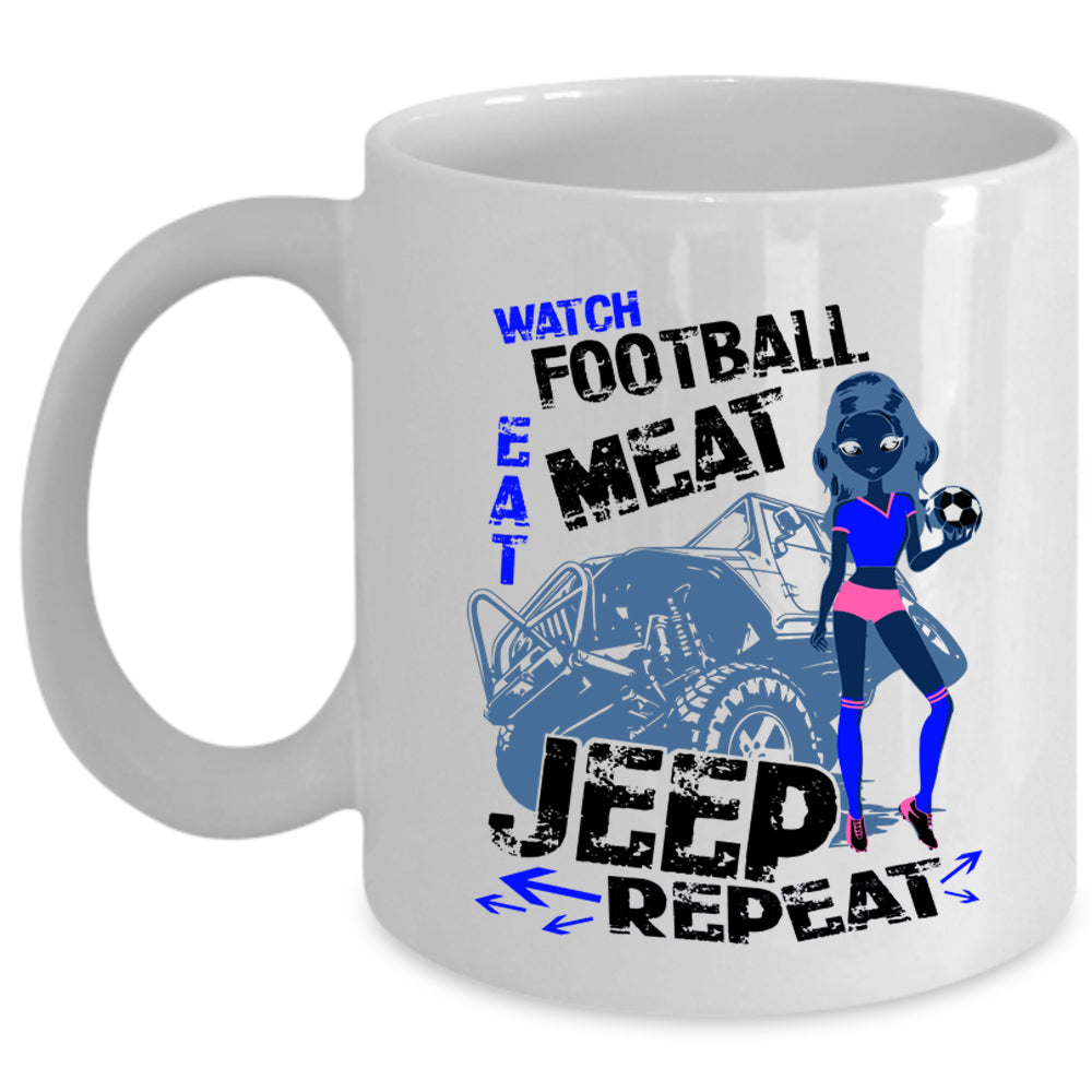 Jeep Coffee Mug, Watch Football Eat Meat Cup