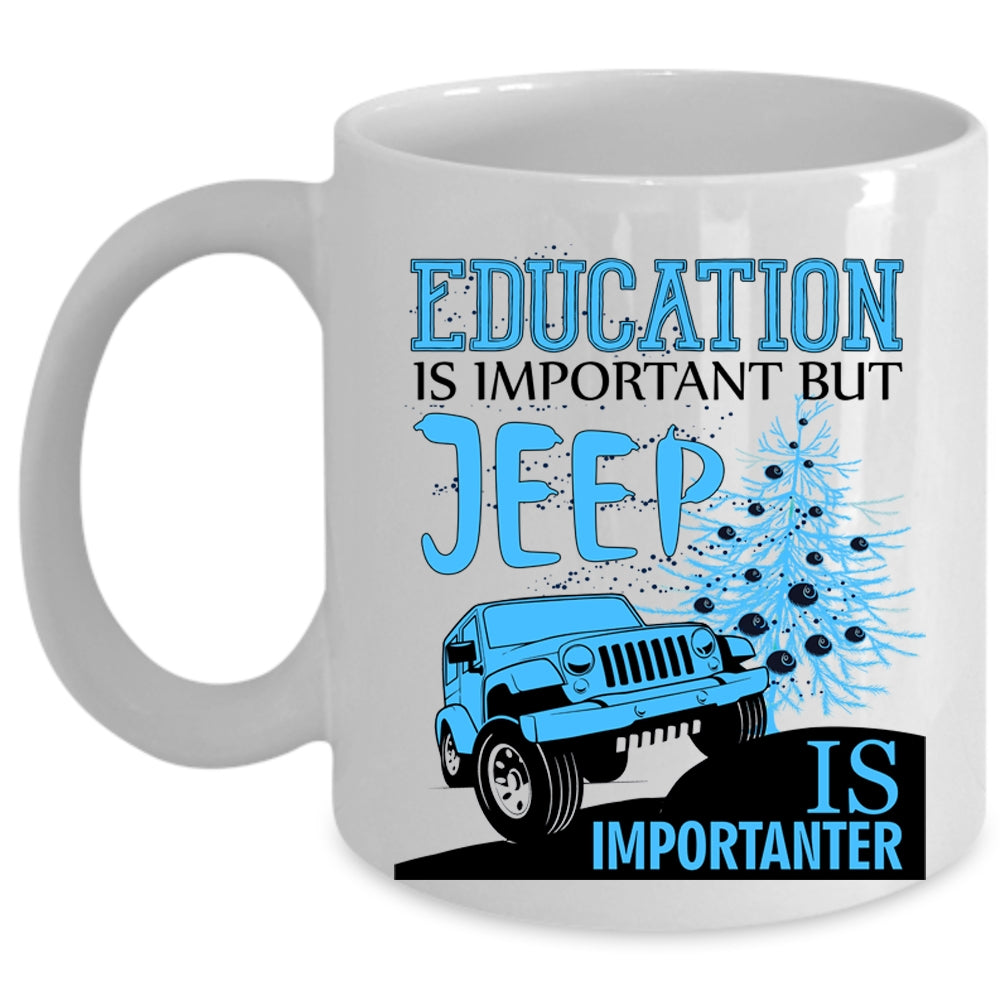 Jeep Is Importanter Coffee Mug, Education Is Important Cup