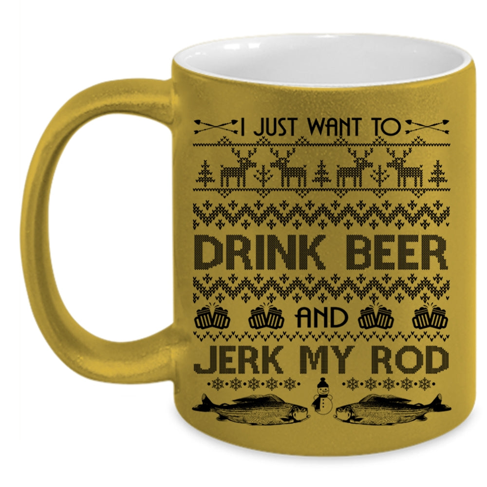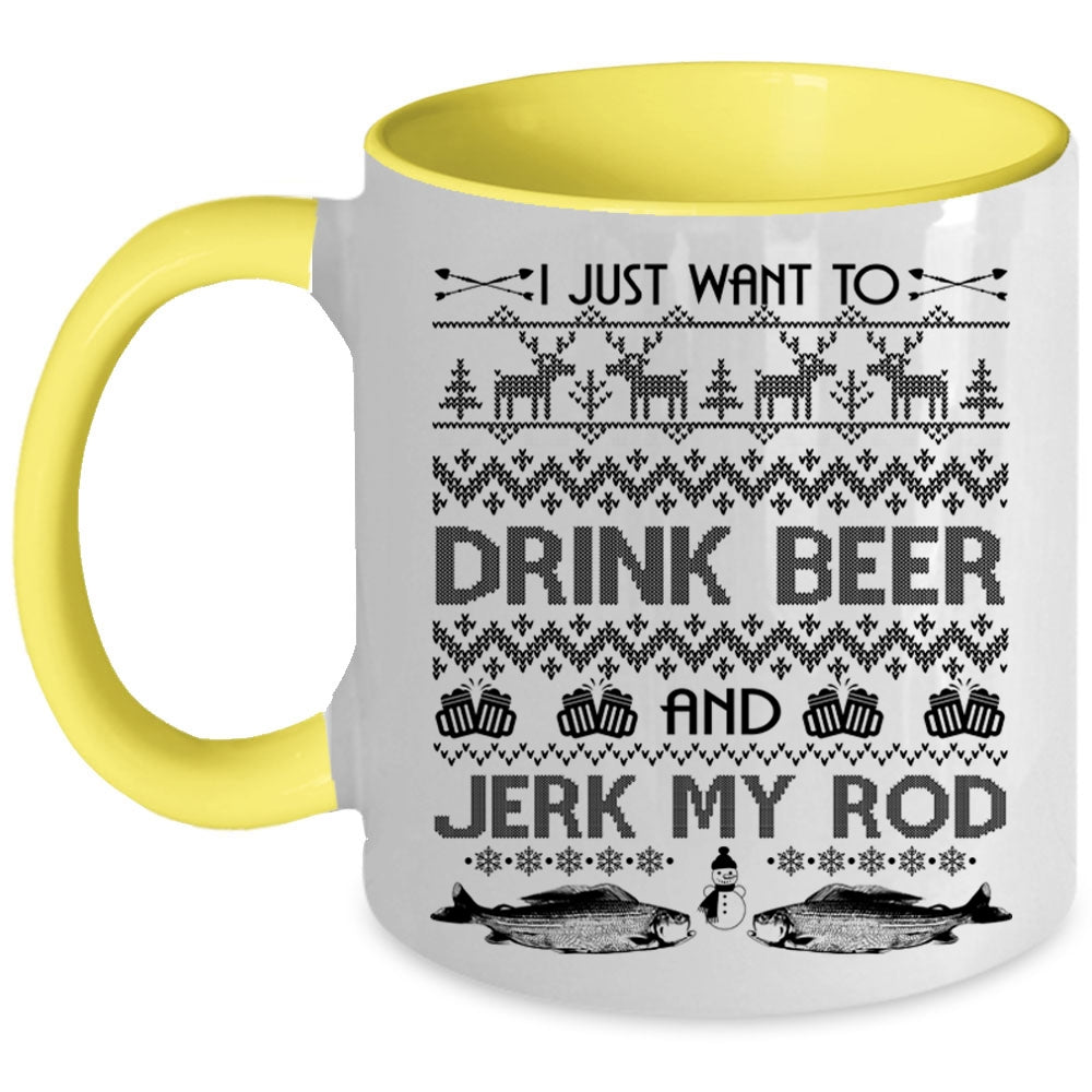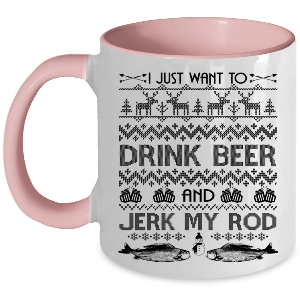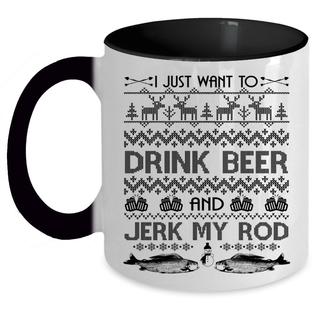 Jerk My Rod Coffee Mug, I Just Want To Drink Beer Accent Mug