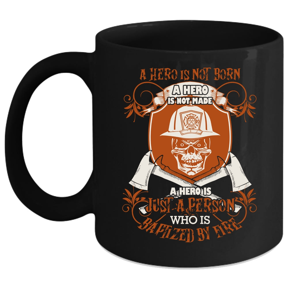 Just A Person Is Baptized By Fire Coffee Mug, Funny Fireman Coffee Cup