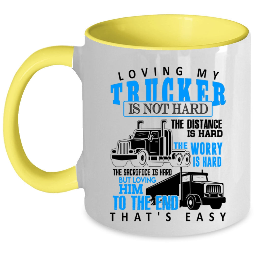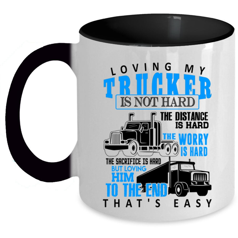 Just Married Coffee Mug, Loving My Trucker Is Not Hard Accent Mug