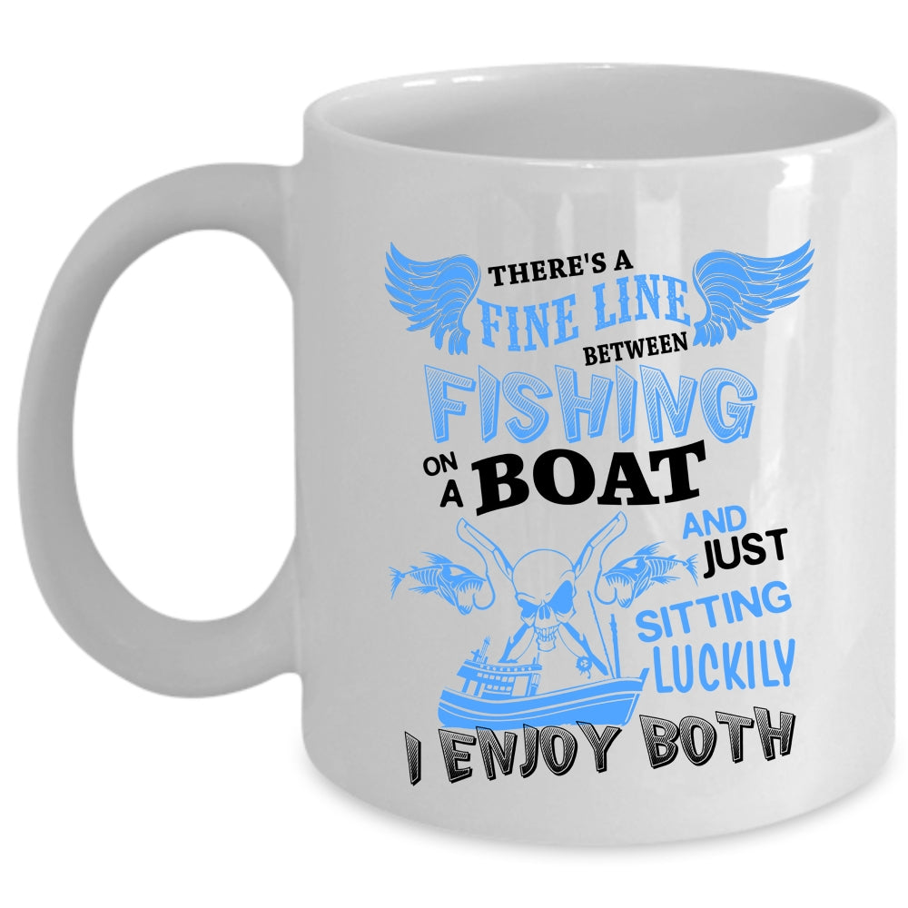 Just Sitting Luckily Coffee Mug, Fishing On A Boat Cup