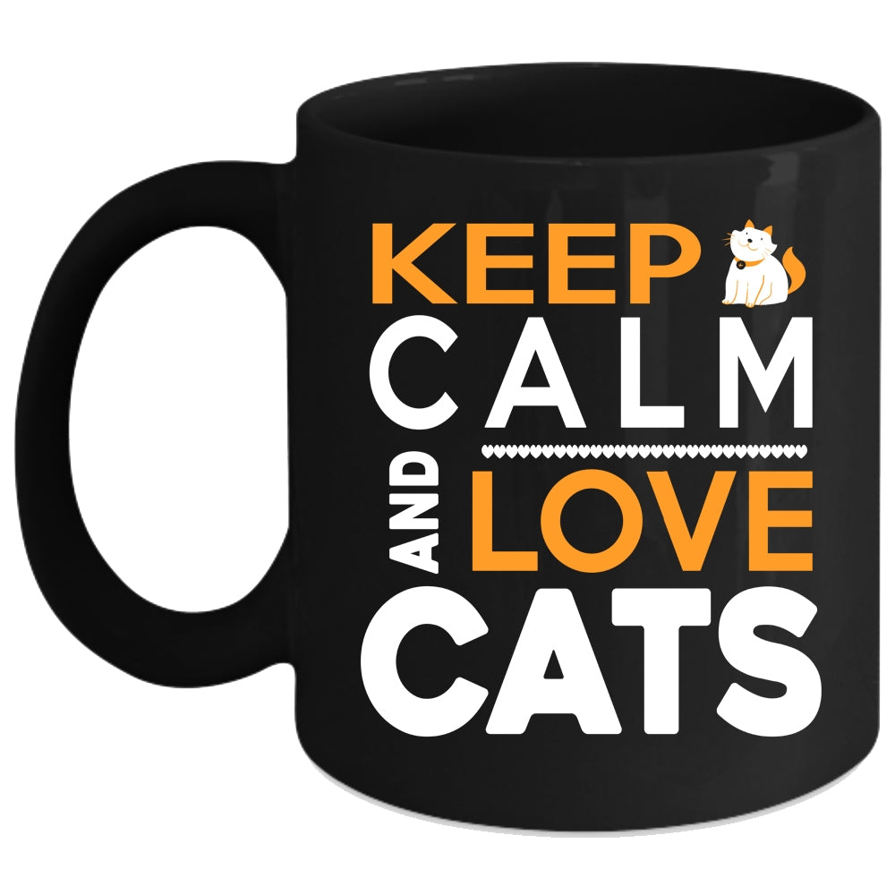 Keep Calm And Love Cats Coffee Mug, Funny Cat Lovers Coffee Cup