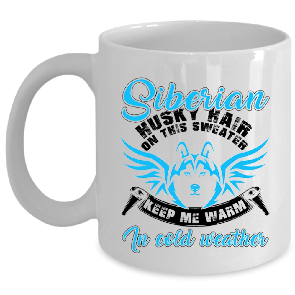 Keep me Warm In Cold Weather Coffee Mug, Siberian Husky Hair On This Sweater Cup