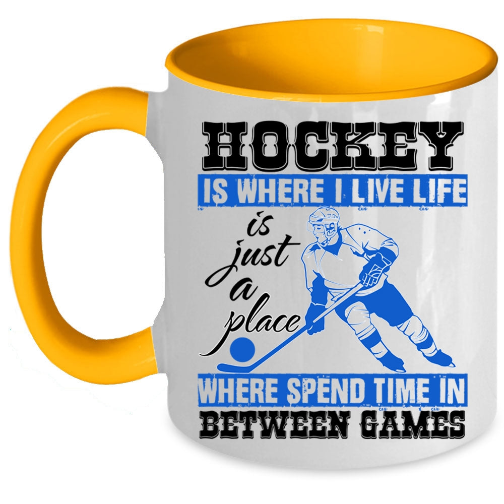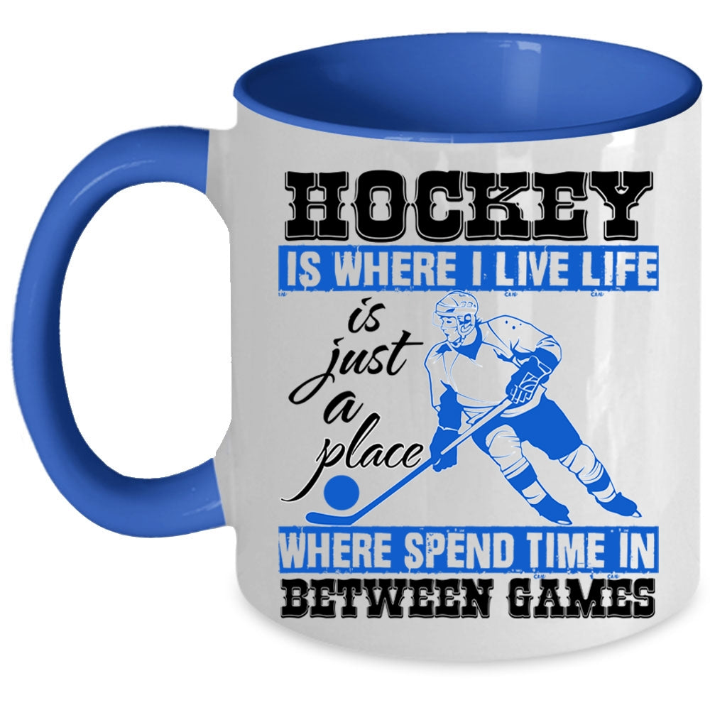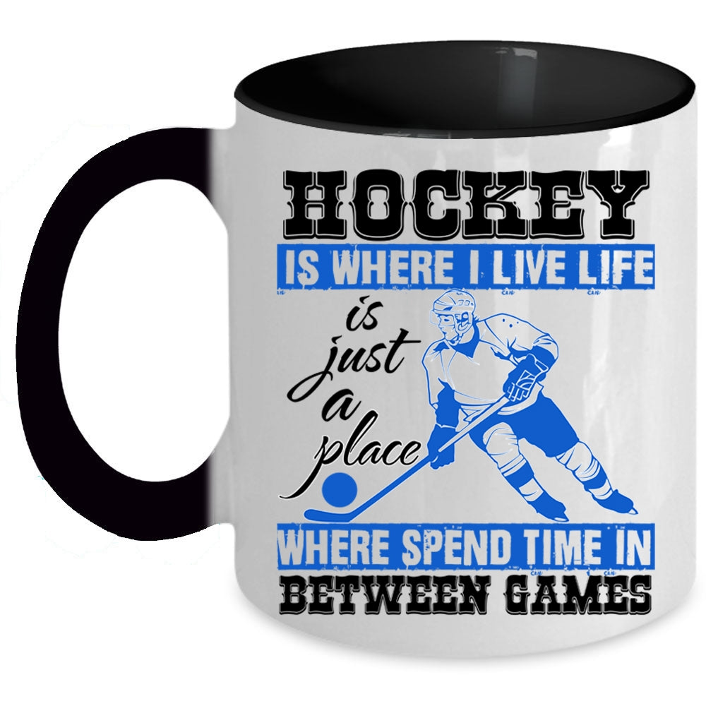 Life Is Just A Place Coffee Mug, Hockey Is Where I Live Accent Mug