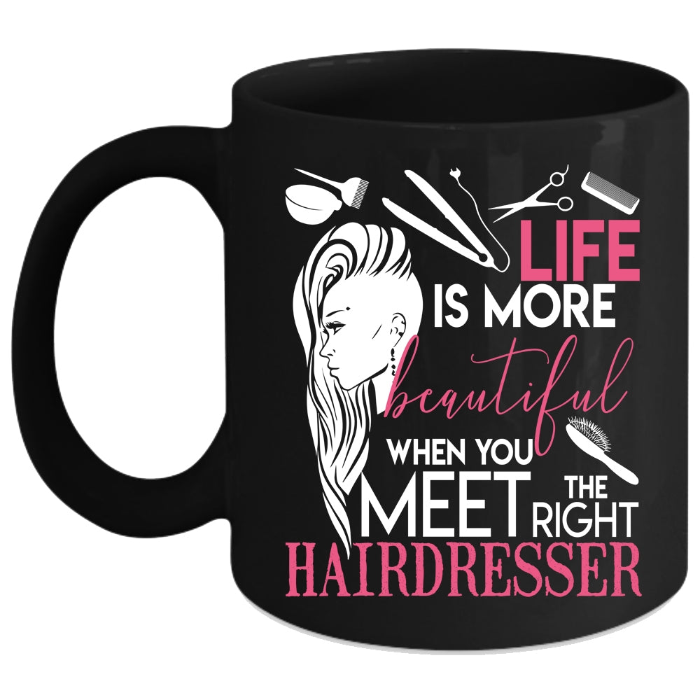 Life Is More Beautiful Coffee Mug, The Right Hairdresser Coffee Cup