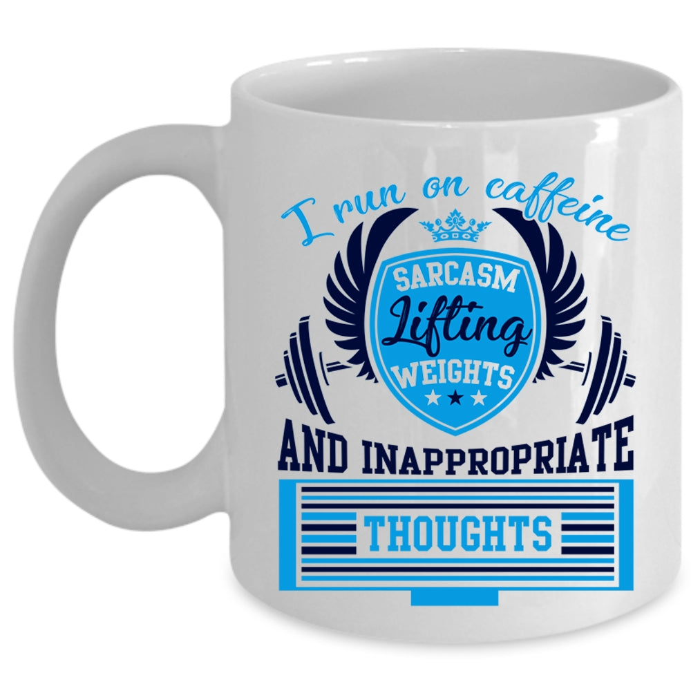 Lifting Weights Coffee Mug, I Run On Caffeine Sarcasm Cup