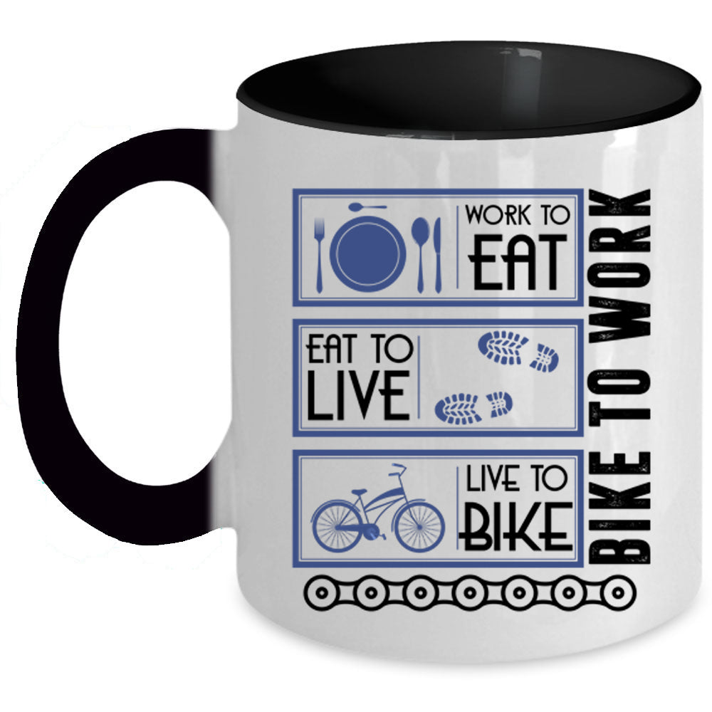 Live To Bike Coffee Mug, Work To Eat Accent Mug