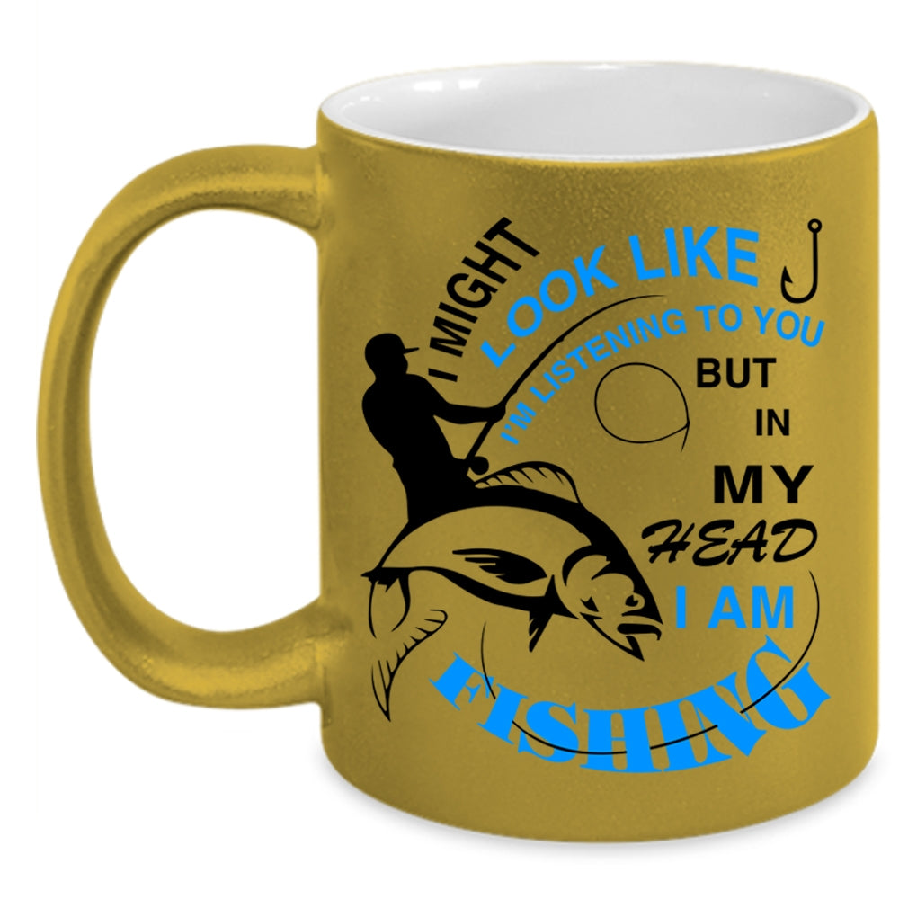 Love Fishing Coffee Mug, In My Head I Am Fishing Accent Mug