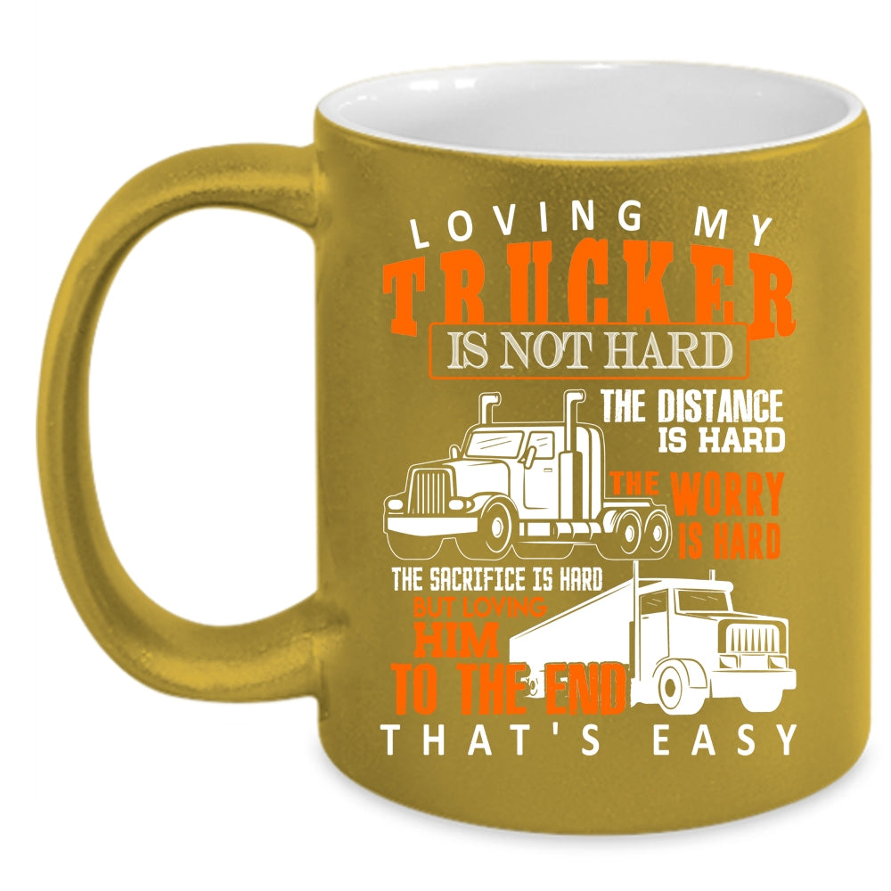 Loving My Trucker Is Not Hard Coffee Mug, Just Married Coffee Cup