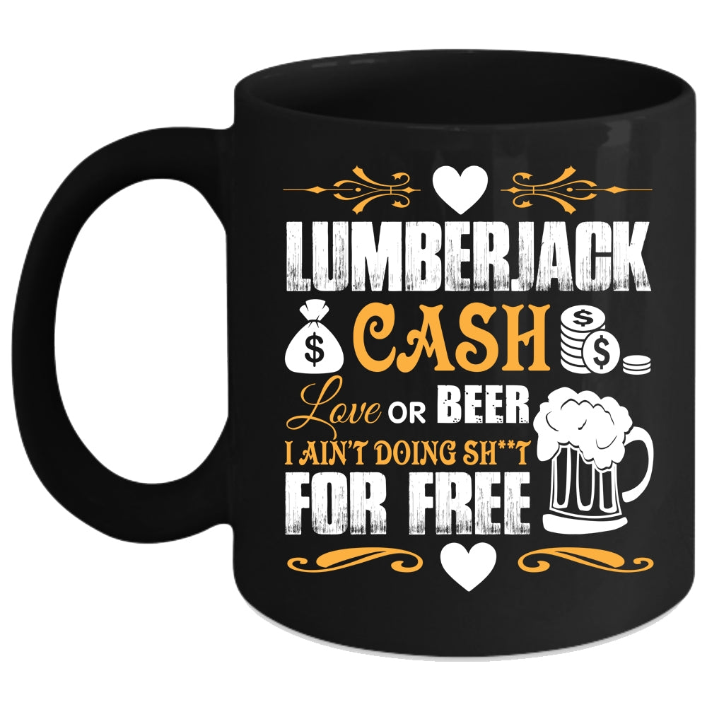 Lumberjack Cash Love Or Beer Coffee Mug, Funny Saying Coffee Cup