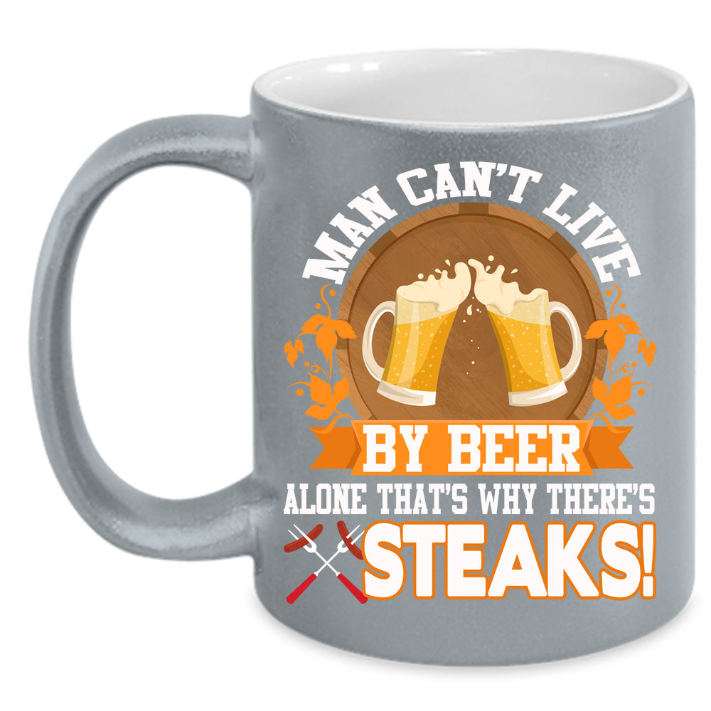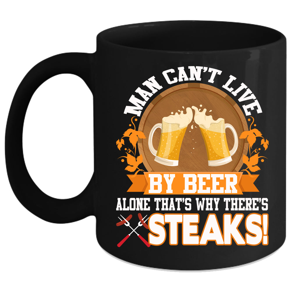 Man Can't Live By Beer Alone Coffee Mug, Funny Beer Drinker Coffee Cup
