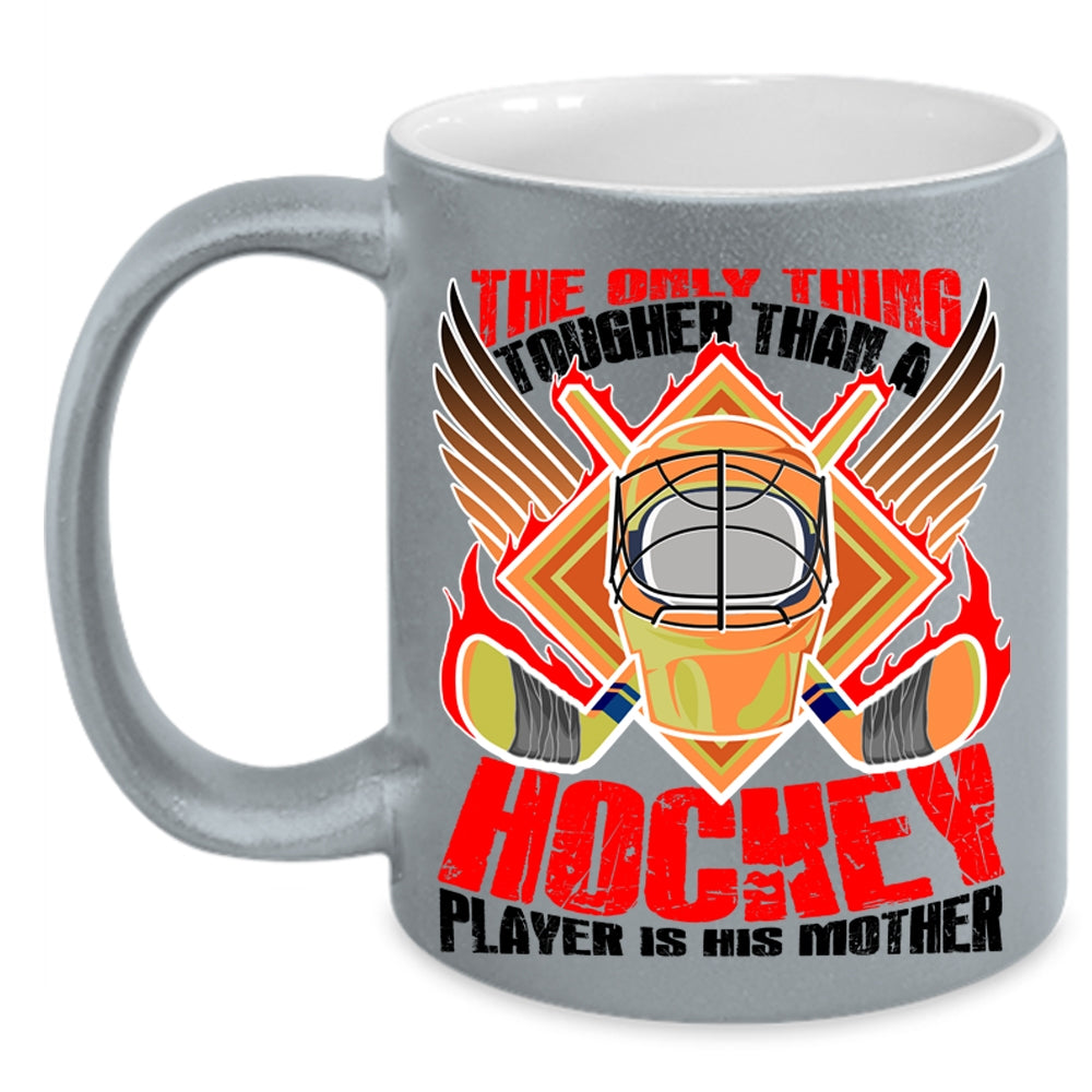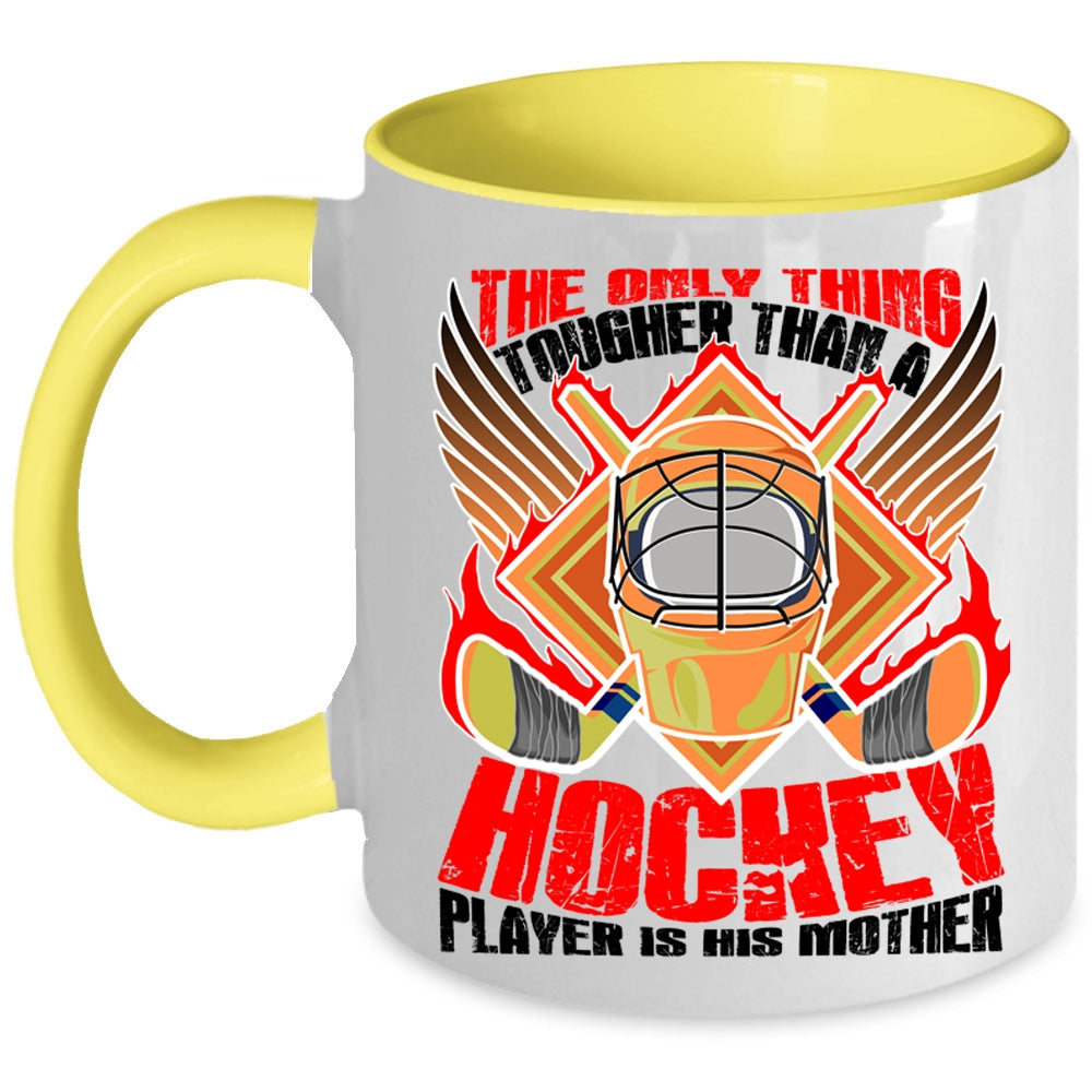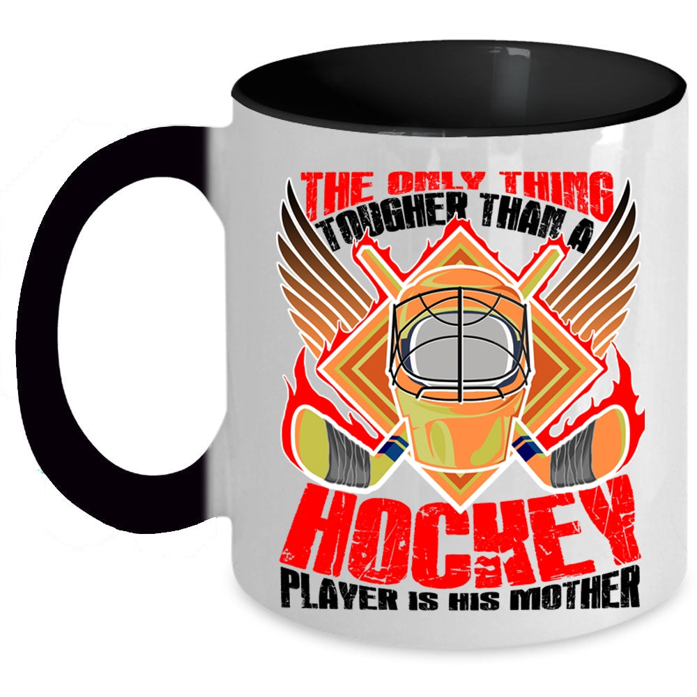 Mom And Son Coffee Mug, Hockey Player Is His Mother Accent Mug