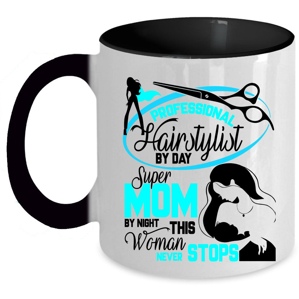 Mom By Night Coffee Mug, Professional Hairstylist By Day Accent Mug
