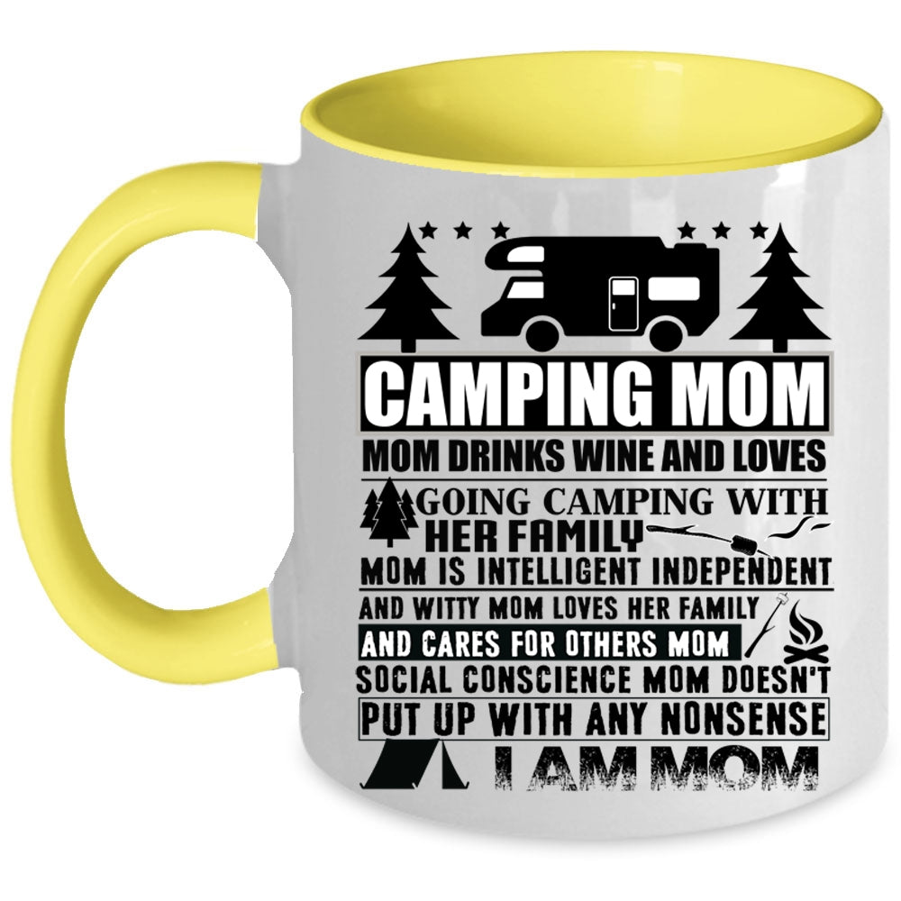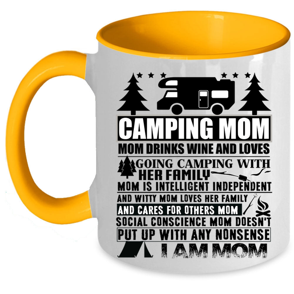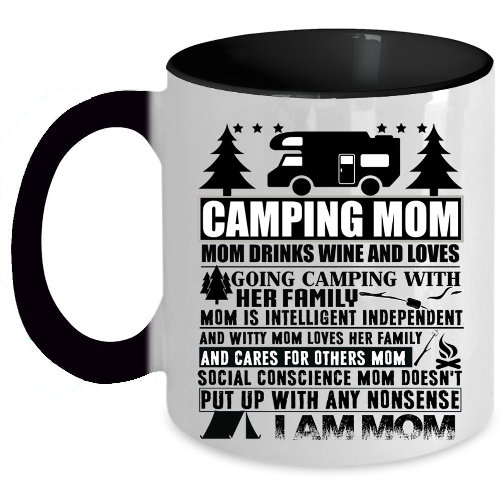 Mom Drinks Wine And Love Camping Coffee Mug, Camping Mom Accent Mug