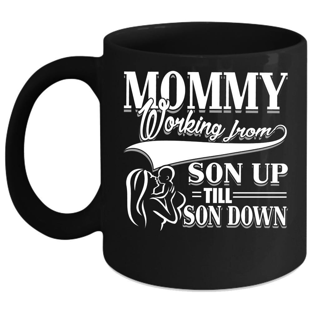 Mommy Working From Son Up till Son Down Coffee Mug, Cute Mom Coffee Cup