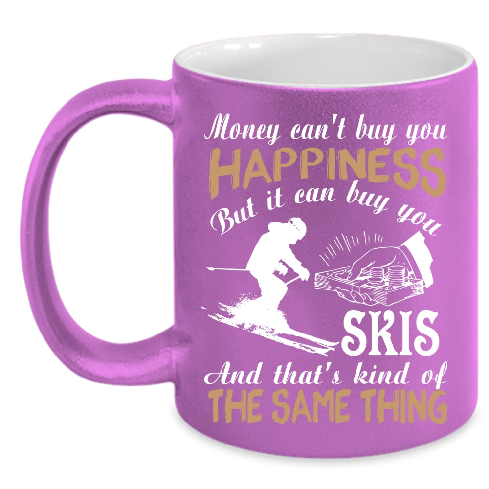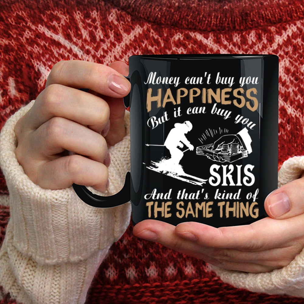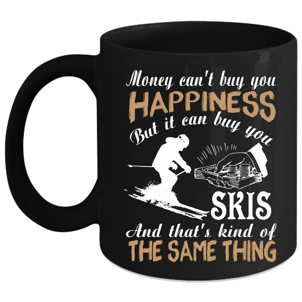 Money Can't Buy You Happiness Coffee Mug, It Can Buy You Skis Coffee Cup