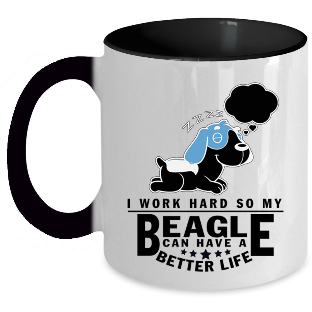 My Beagle Can Have A Better Life Coffee Mug, I Work Hard Accent Mug
