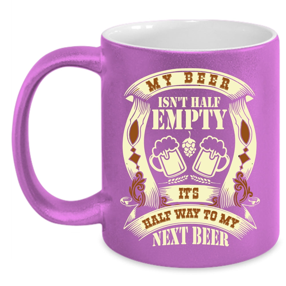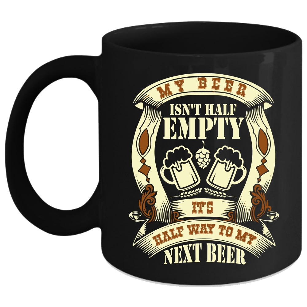 My Beer Isn't Half Empty Coffee Mug, It's Half Way To My Next Beer Coffee Cup