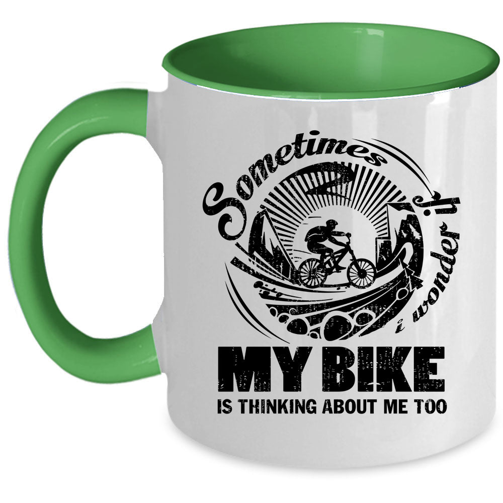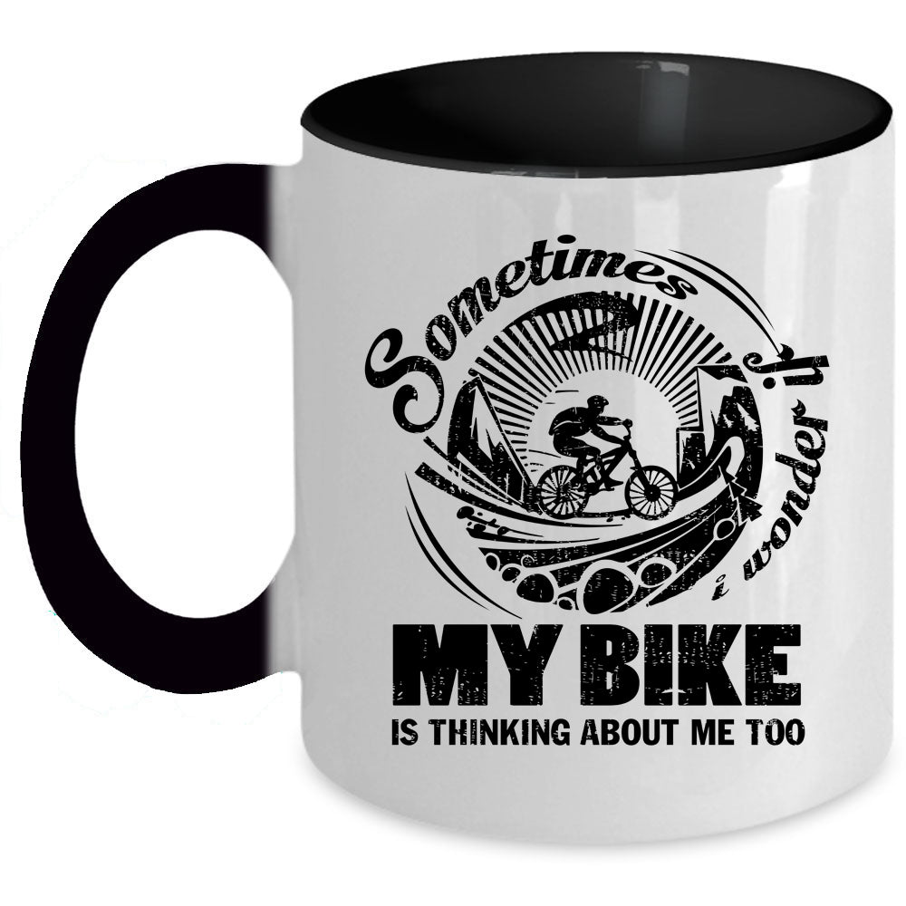 My Bike Is Thinking About Me Too Coffee Mug, Sometimes I Wonder Accent Mug