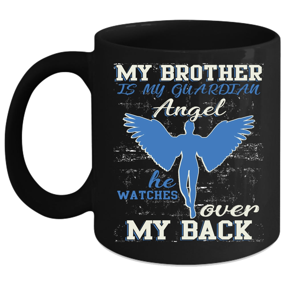 My Brother Is My Guardian Angel Coffee Mug, He Watches Over My Back Coffee Cup