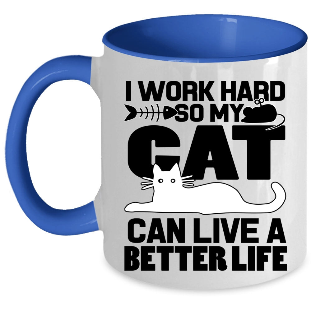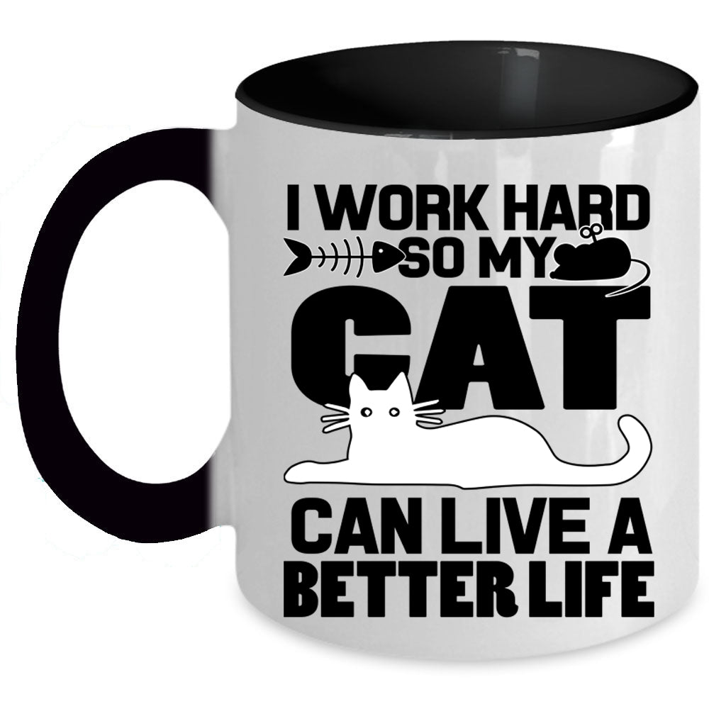 My Cat Can Live A Better Life Coffee Mug, I Work Hard Accent Mug