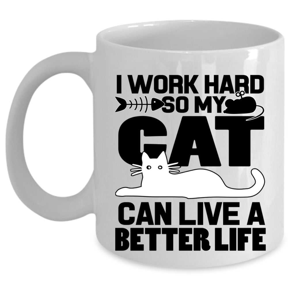 My Cat Can Live A Better Life Coffee Mug, I Work Hard Cup