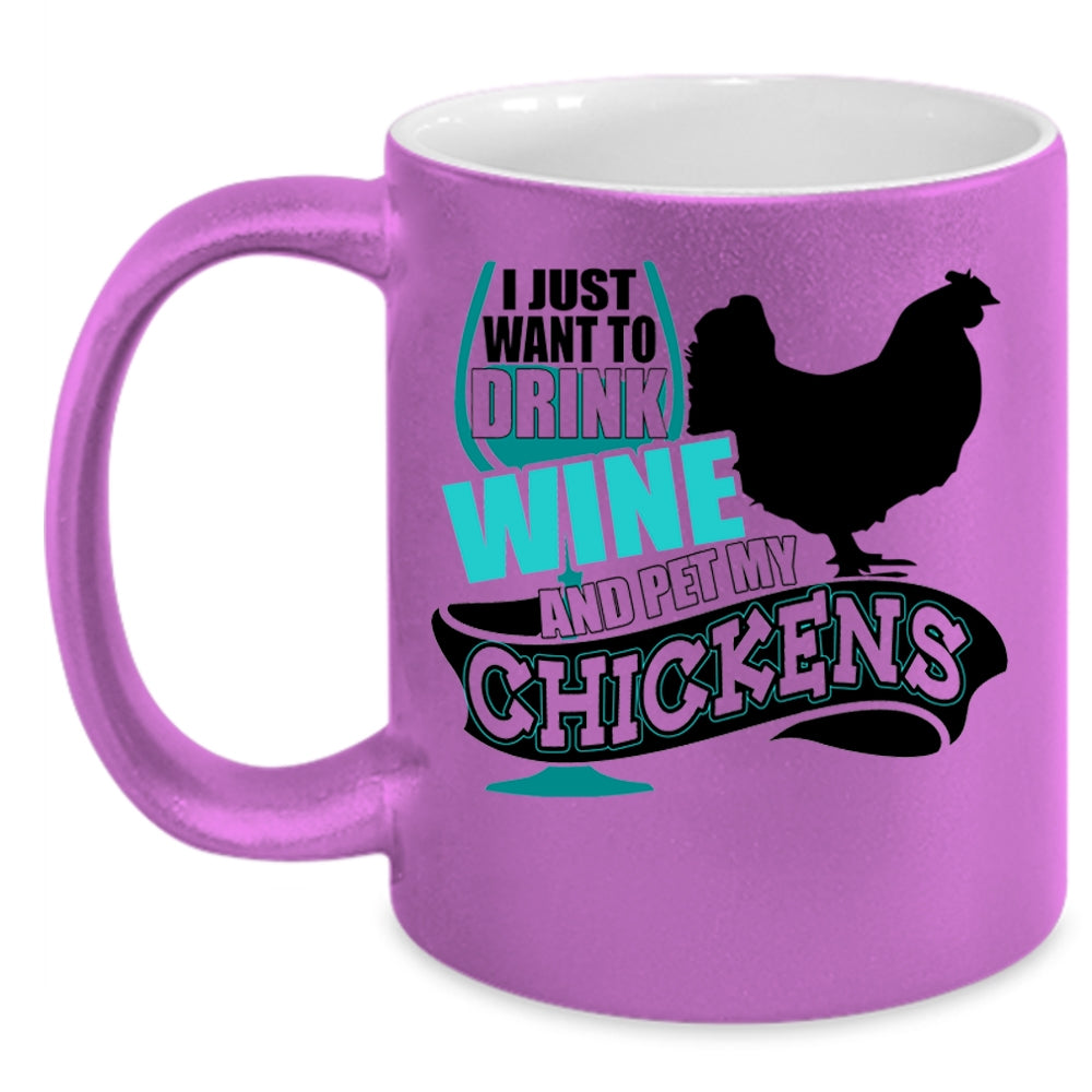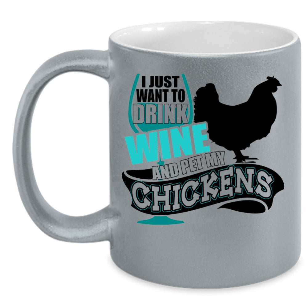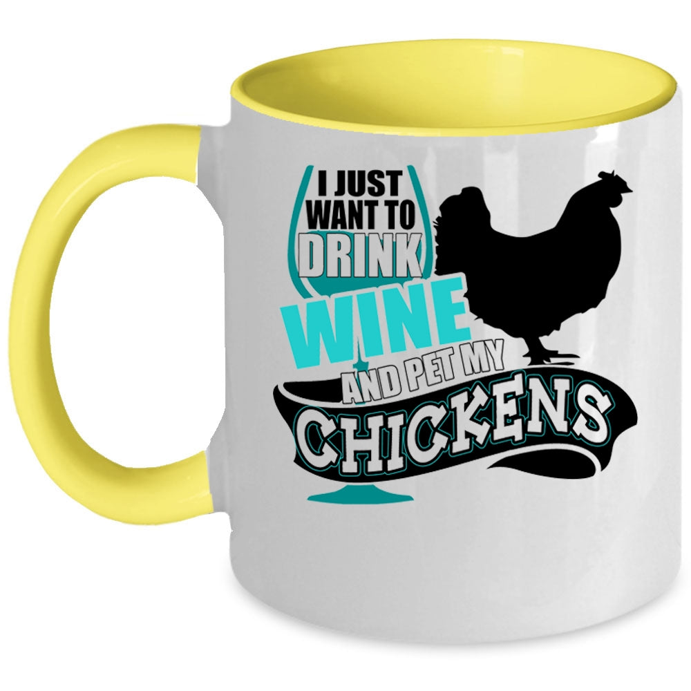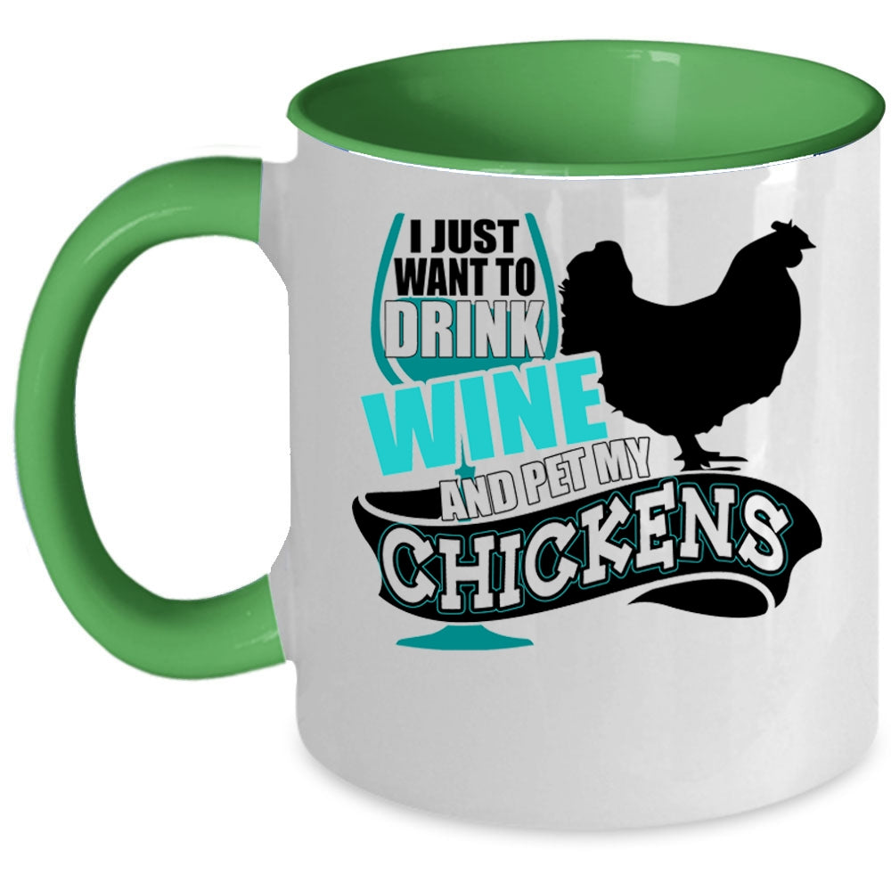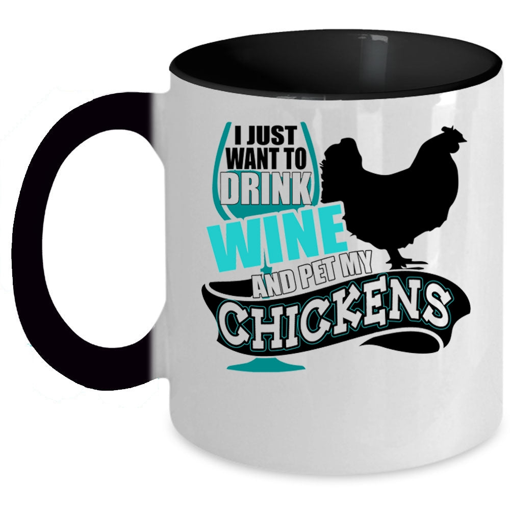 My Chickens Coffee Mug, I Just Want To Drink Wine And Pet Accent Mug