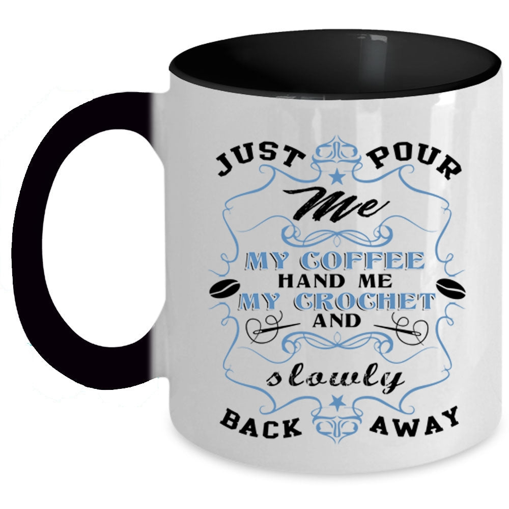 My Crochet And Sowly Back Away Coffee Mug, Just Pour Me My Coffee Accent Mug