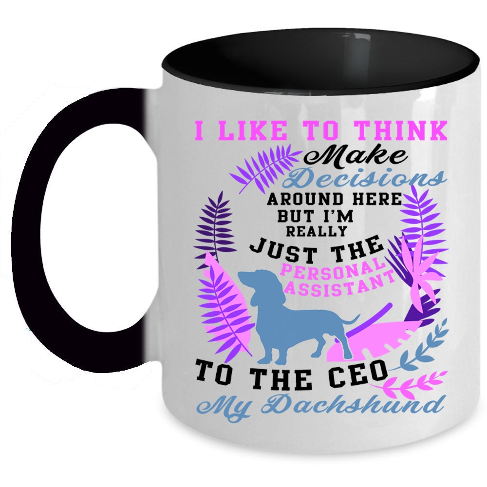 My Dachshund Coffee Mug, I Like To Think Make Decisions Accent Mug