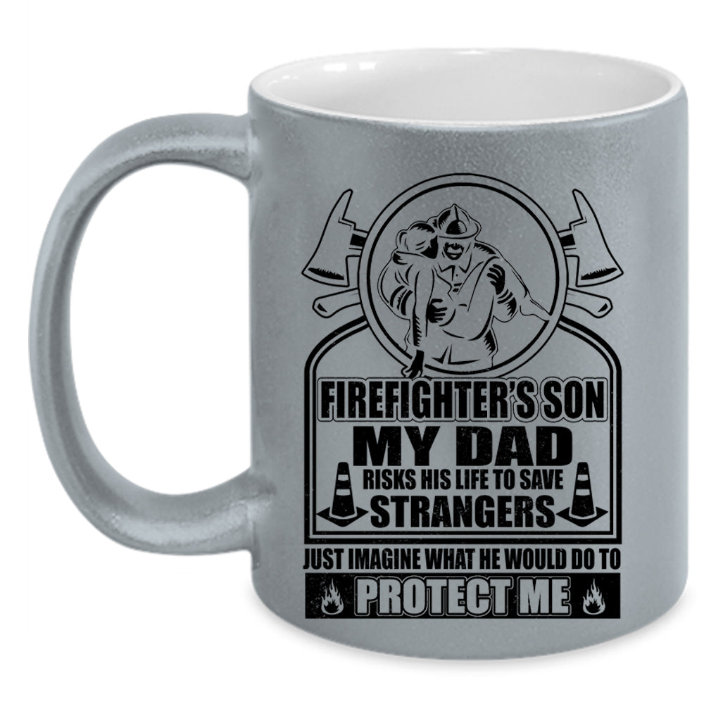 My Dad Would Do To Protect Me Coffee Mug, Firefighter's Son Accent Mug