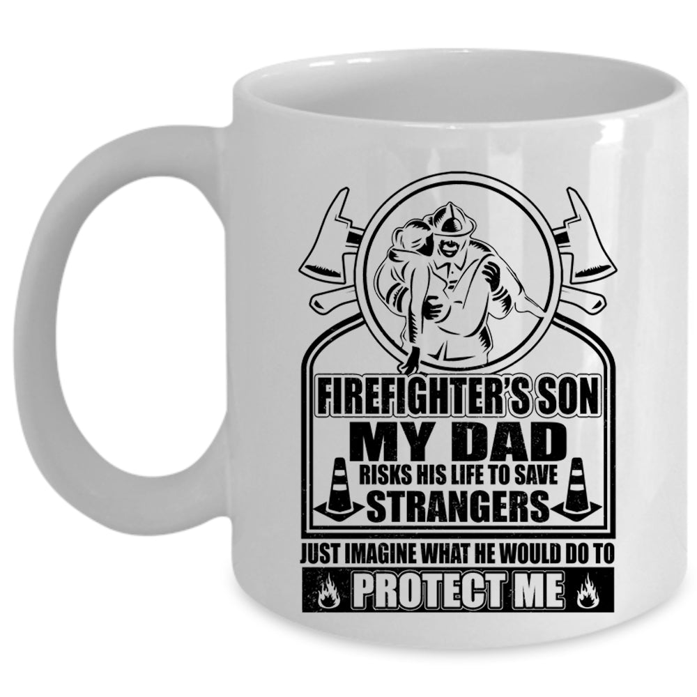 My Dad Would Do To Protect Me Coffee Mug, Firefighter's Son Cup
