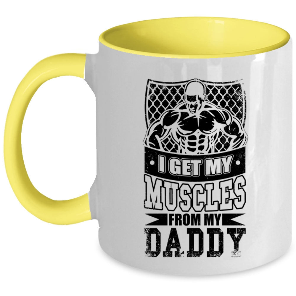 My Daddy Coffee Mug, I Get My Muscles From My Daddy Accent Mug