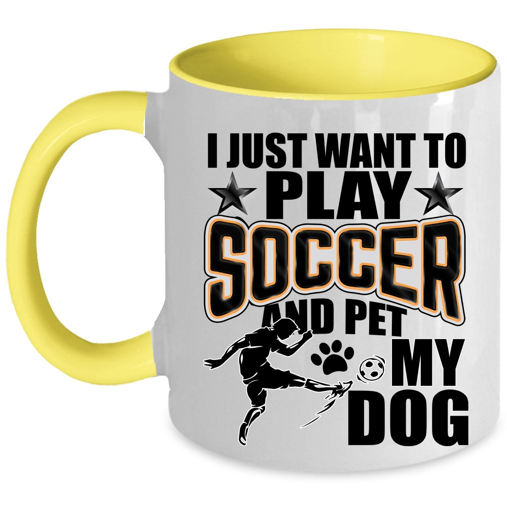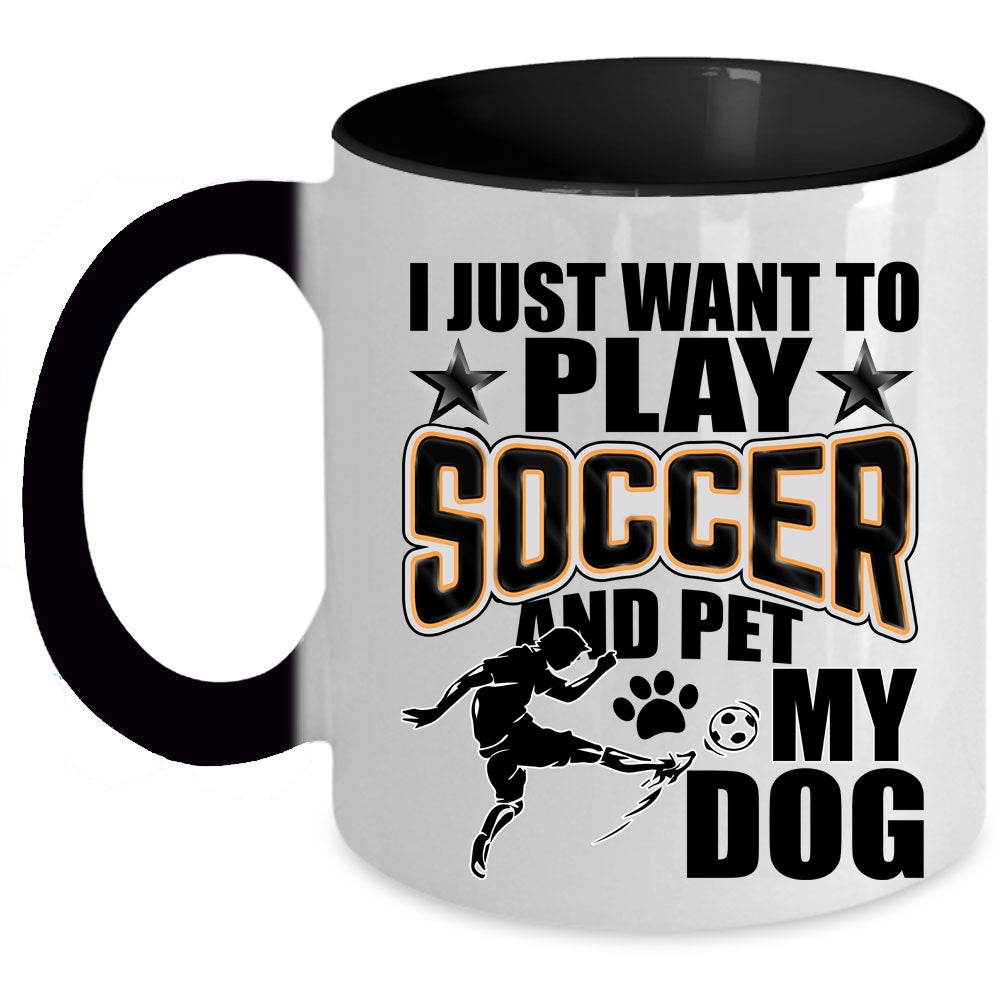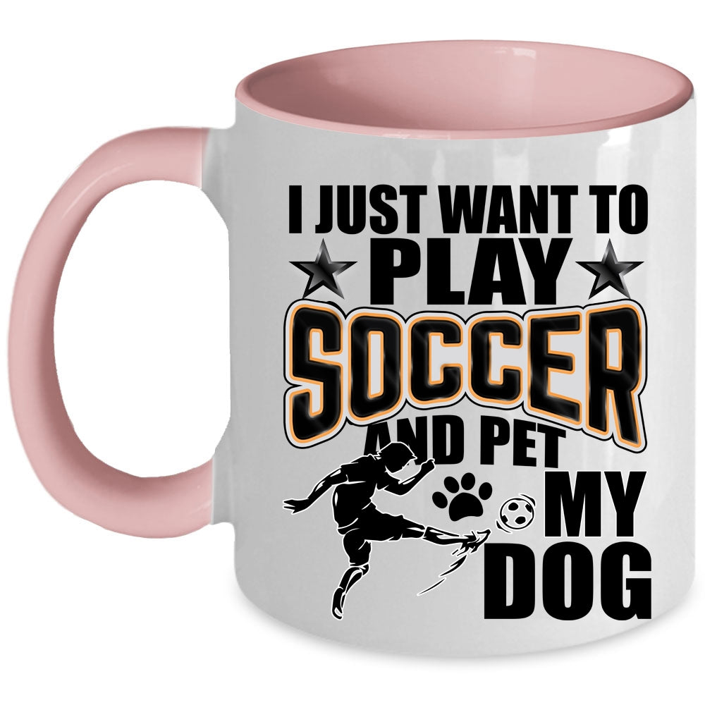 My Dog Coffee Mug, I Just Want To Play Soccer And Pet Accent Mug