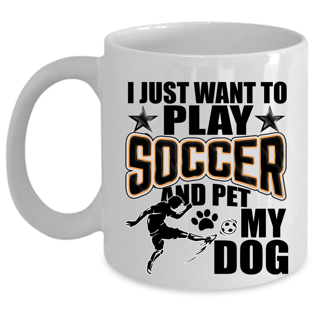 My Dog Coffee Mug, I Just Want To Play Soccer And Pet Cup