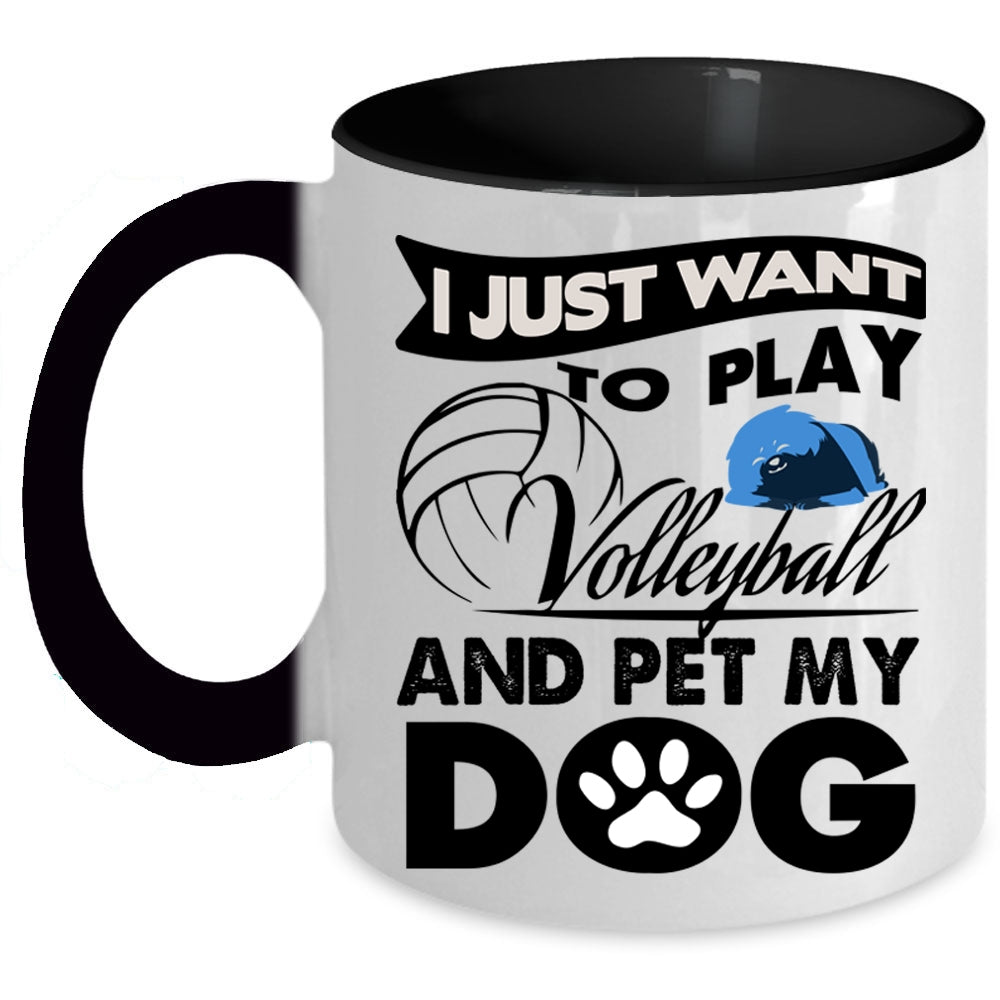 My Dog Coffee Mug, I Just Want To Play Volleyball And Pet Accent Mug