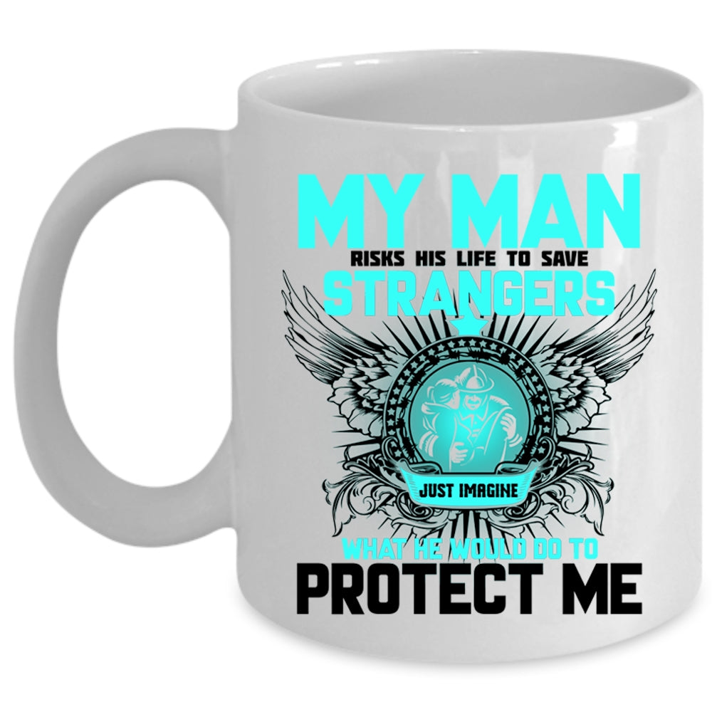 My Firefighter Coffee Mug, My Man Would Do To Protect Me Cup
