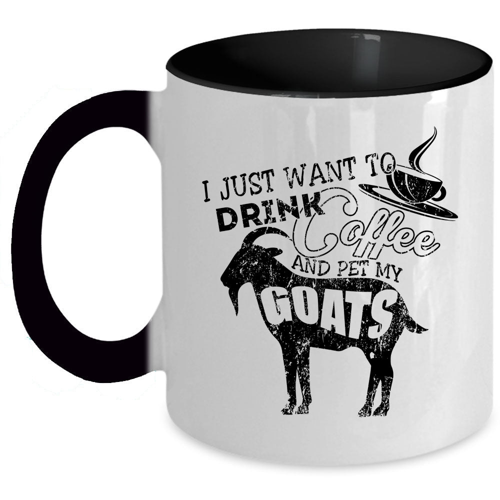 My Goats Coffee Mug, I Just Want To Drink Coffee And Pet Accent Mug