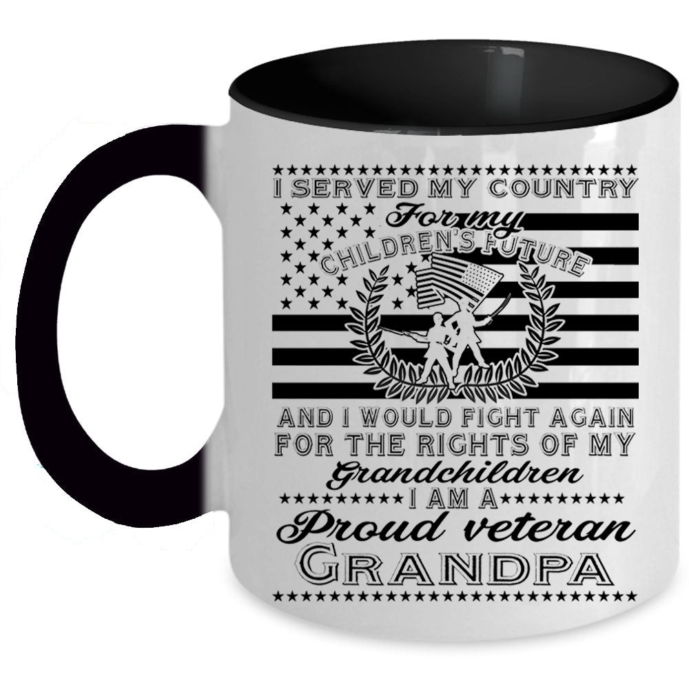 My Grandchildren Coffee Mug, I Am A Proud Veteran Grandpa Accent Mug